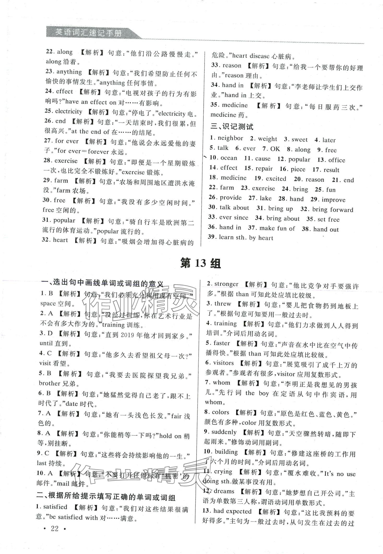 注:目前有些书本章节名称可能整理的还不是很完善,但都是按照顺序排列的,请同学们按照顺序仔细查找。练习册 2024年英语词汇速记手册 答案主要是用来给同学们做完题方便对答案用的,请勿直接抄袭。