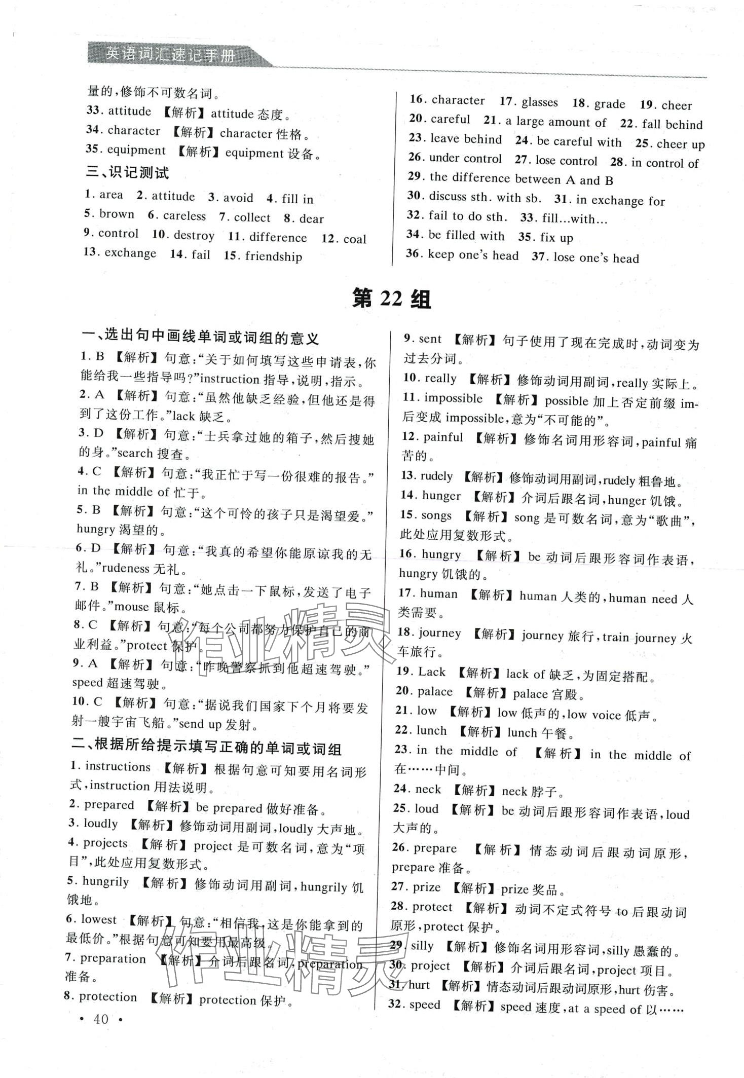 注:目前有些书本章节名称可能整理的还不是很完善,但都是按照顺序排列的,请同学们按照顺序仔细查找。练习册 2024年英语词汇速记手册 答案主要是用来给同学们做完题方便对答案用的,请勿直接抄袭。