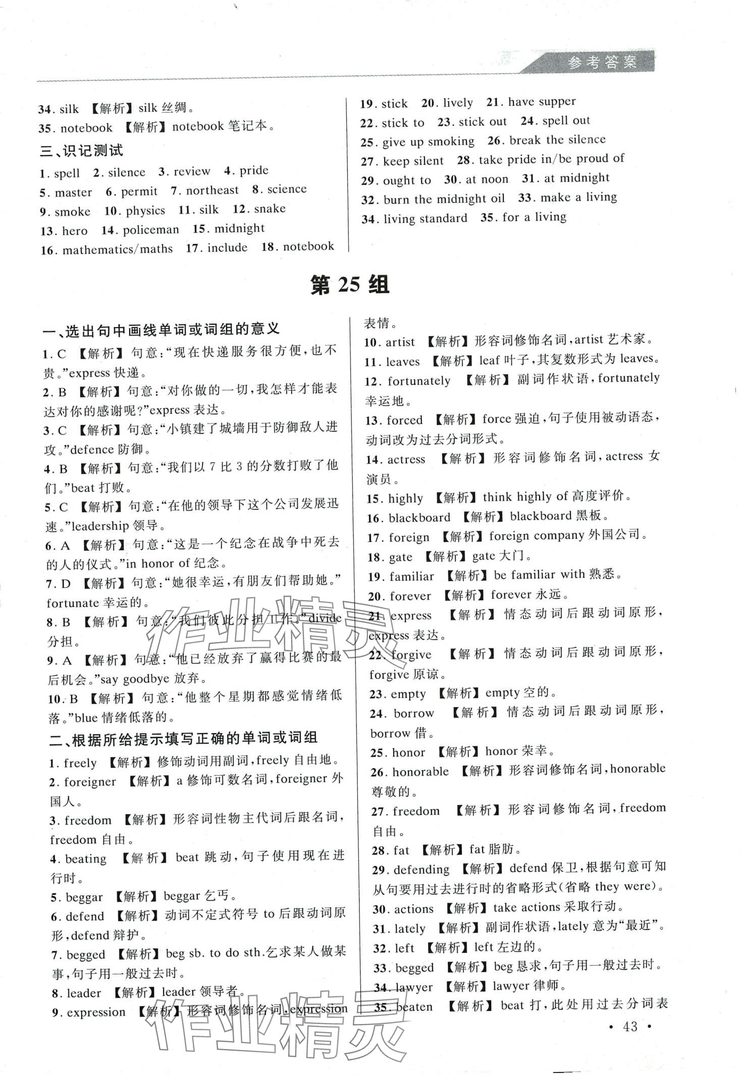 注:目前有些书本章节名称可能整理的还不是很完善,但都是按照顺序排列的,请同学们按照顺序仔细查找。练习册 2024年英语词汇速记手册 答案主要是用来给同学们做完题方便对答案用的,请勿直接抄袭。