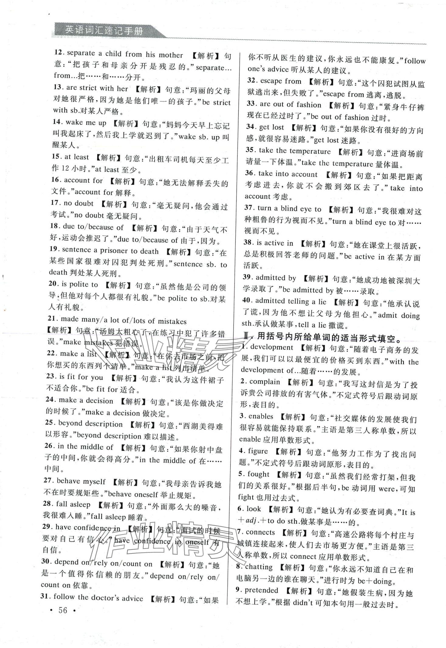 注:目前有些书本章节名称可能整理的还不是很完善,但都是按照顺序排列的,请同学们按照顺序仔细查找。练习册 2024年英语词汇速记手册 答案主要是用来给同学们做完题方便对答案用的,请勿直接抄袭。
