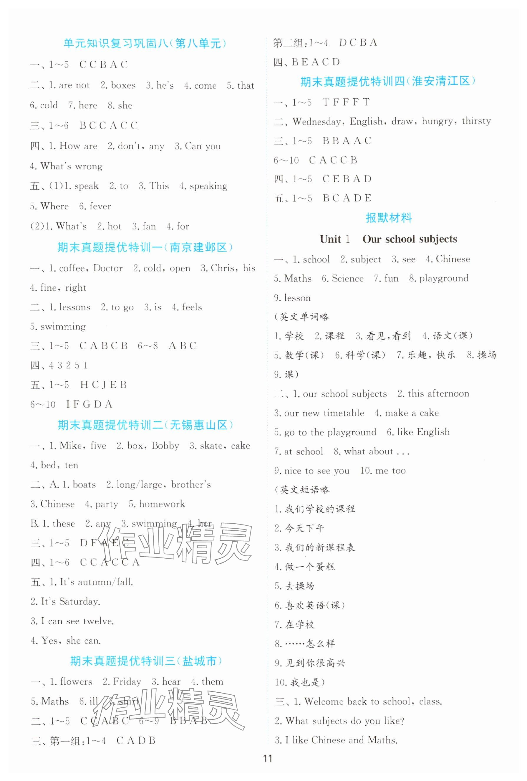 注:目前有些书本章节名称可能整理的还不是很完善,但都是按照顺序排列的,请同学们按照顺序仔细查找。练习册 2024年小学英语默写高手四年级下册译林版 答案主要是用来给同学们做完题方便对答案用的,请勿直接抄袭。