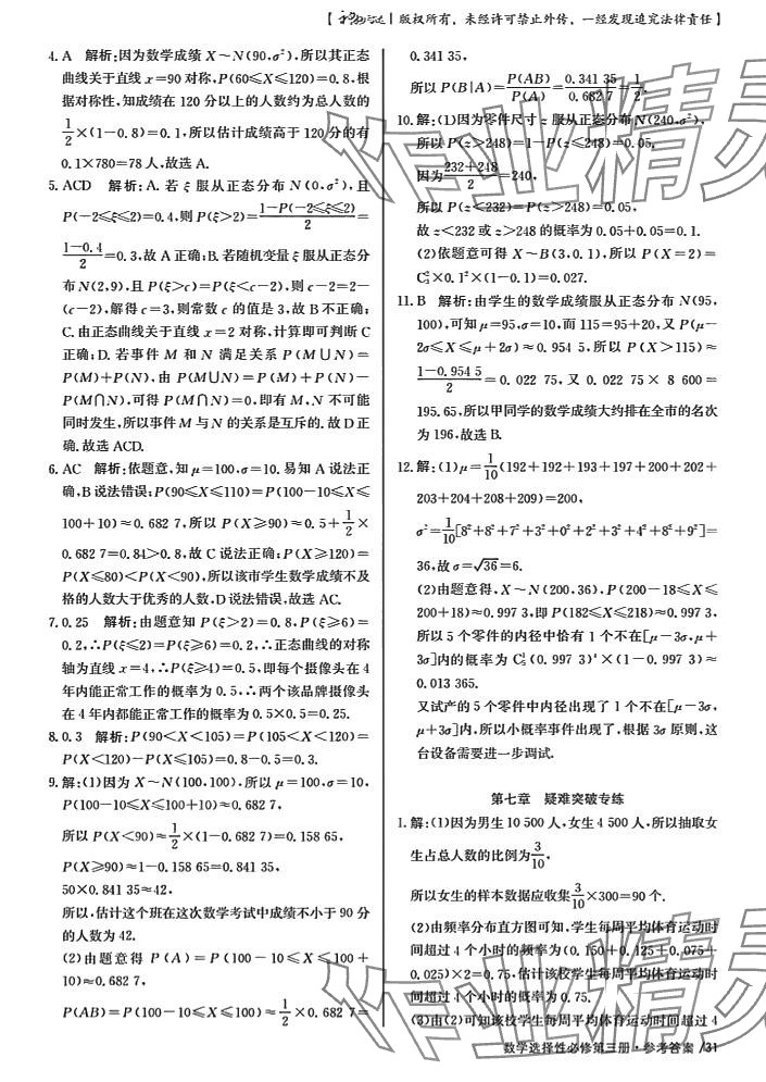 注:目前有些书本章节名称可能整理的还不是很完善,但都是按照顺序排列的,请同学们按照顺序仔细查找。练习册 2024年一线精练高中数学选择性必修3 答案主要是用来给同学们做完题方便对答案用的,请勿直接抄袭。