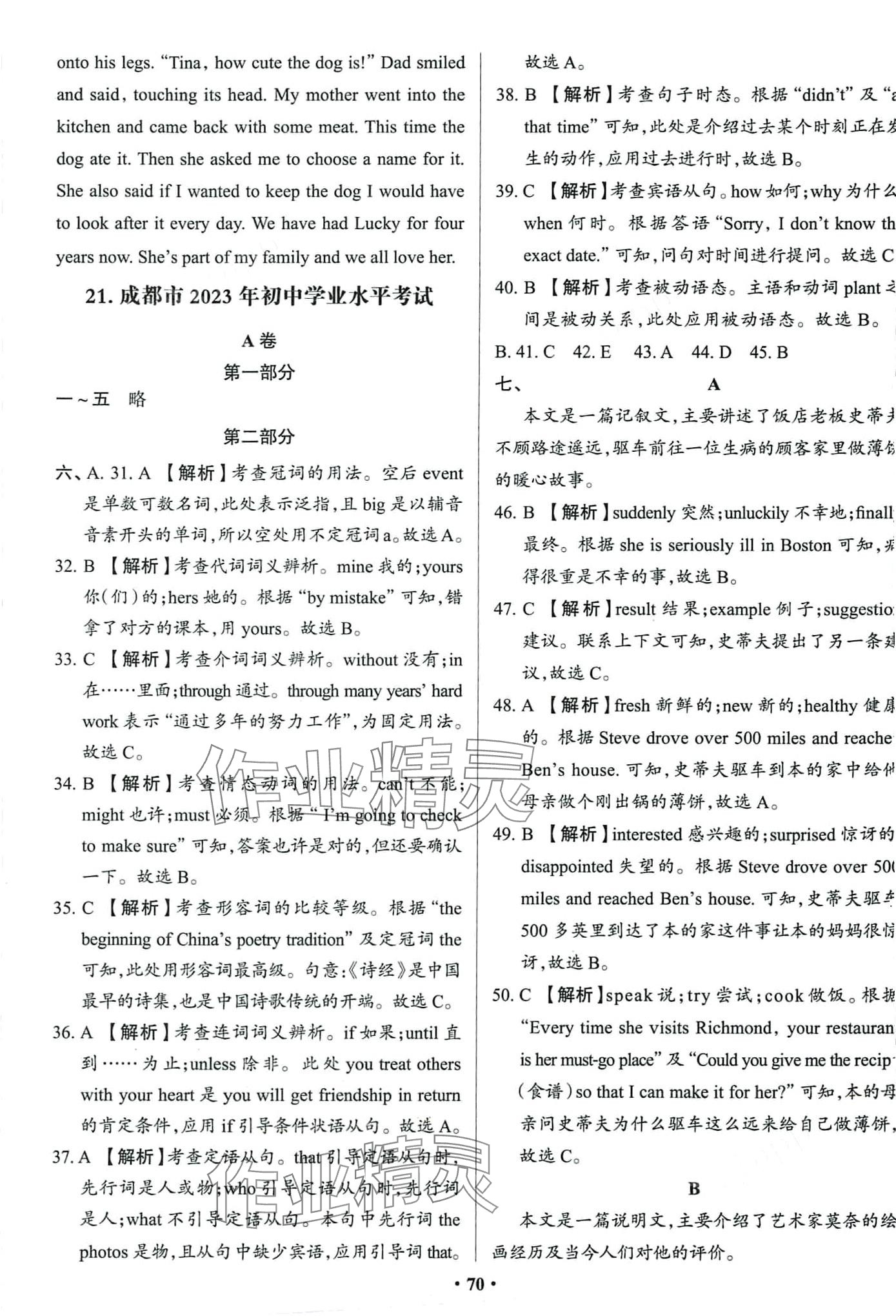 注:目前有些书本章节名称可能整理的还不是很完善,但都是按照顺序排列的,请同学们按照顺序仔细查找。练习册 2024年中考必刷卷吉林人民出版社英语 答案主要是用来给同学们做完题方便对答案用的,请勿直接抄袭。