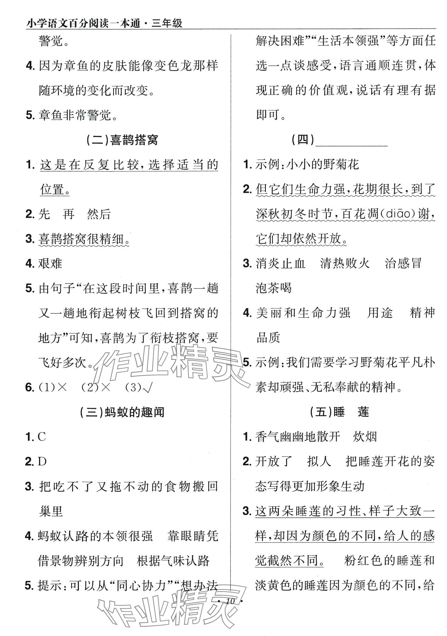 注:目前有些书本章节名称可能整理的还不是很完善,但都是按照顺序排列的,请同学们按照顺序仔细查找。练习册 2024年百分阅读三年级语文 答案主要是用来给同学们做完题方便对答案用的,请勿直接抄袭。