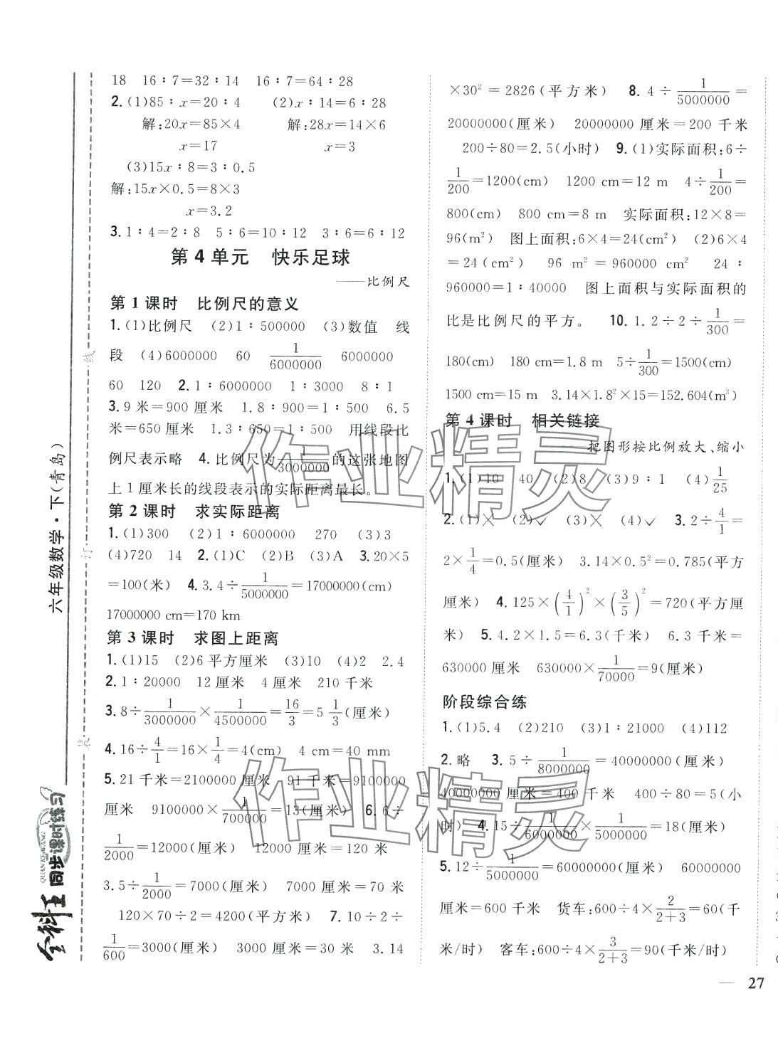 注:目前有些书本章节名称可能整理的还不是很完善,但都是按照顺序排列的,请同学们按照顺序仔细查找。练习册 2024年全科王同步课时练习六年级数学下册青岛版 答案主要是用来给同学们做完题方便对答案用的,请勿直接抄袭。