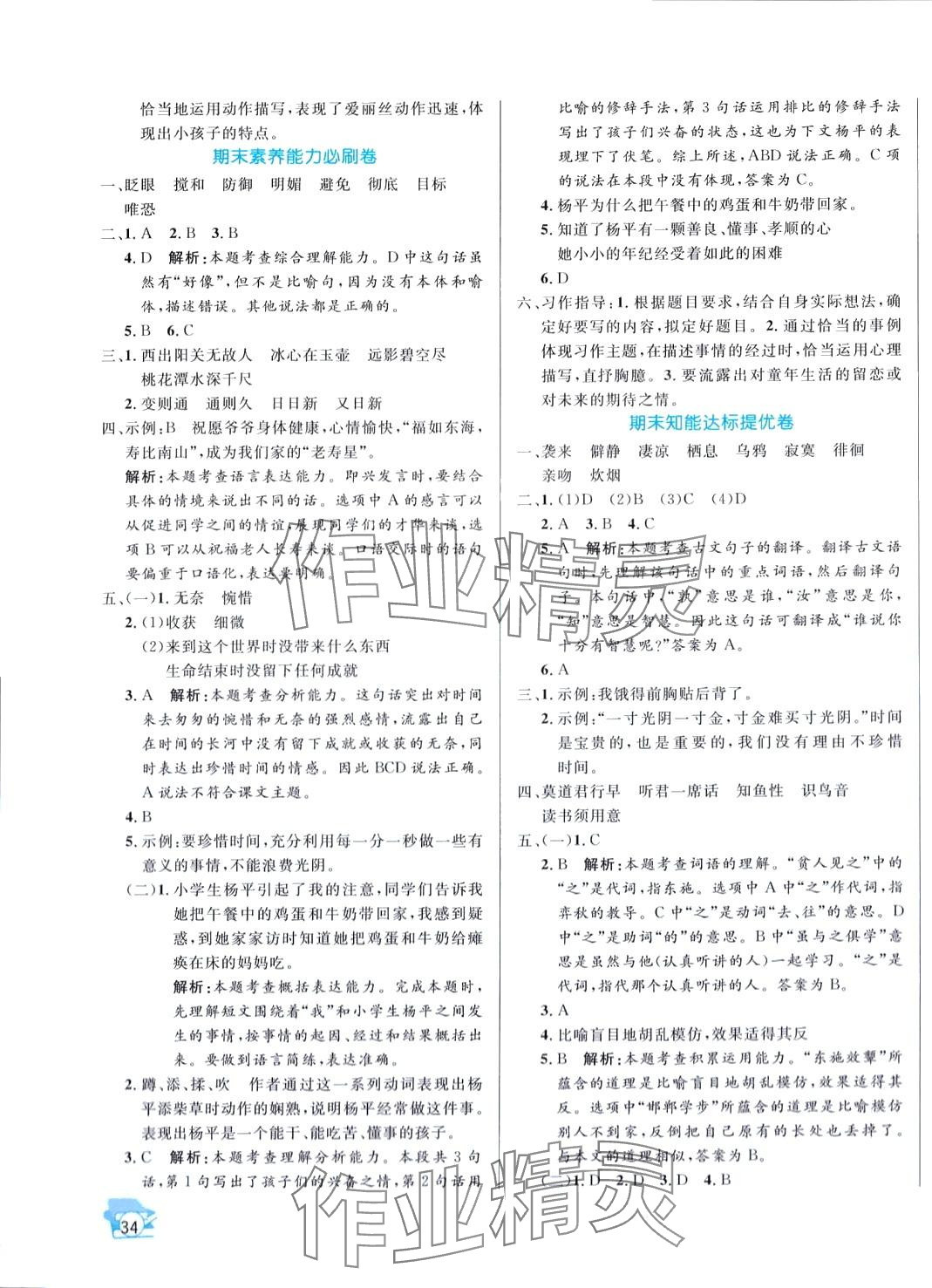注:目前有些书本章节名称可能整理的还不是很完善,但都是按照顺序排列的,请同学们按照顺序仔细查找。练习册 2024年小学期末黄冈必刷卷六年级语文下册人教版 答案主要是用来给同学们做完题方便对答案用的,请勿直接抄袭。