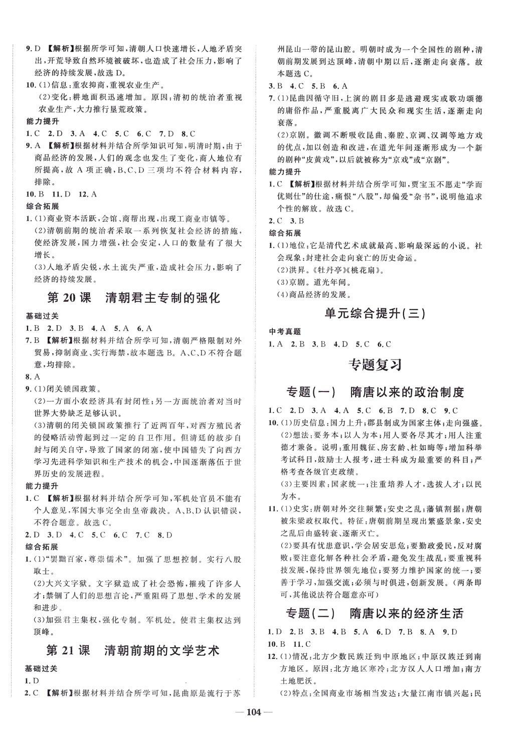 注:目前有些书本章节名称可能整理的还不是很完善,但都是按照顺序排列的,请同学们按照顺序仔细查找。练习册 2024年天成导学金典同步练七年级历史下册人教版 答案主要是用来给同学们做完题方便对答案用的,请勿直接抄袭。