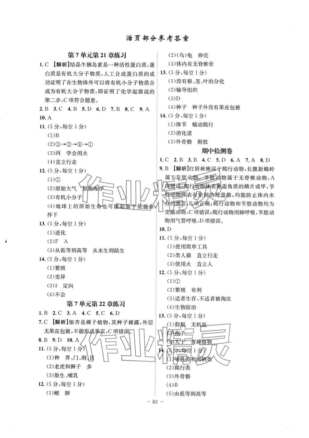 注:目前有些书本章节名称可能整理的还不是很完善,但都是按照顺序排列的,请同学们按照顺序仔细查找。练习册 2024年课时A计划八年级生物下册北师大版安徽专版 答案主要是用来给同学们做完题方便对答案用的,请勿直接抄袭。