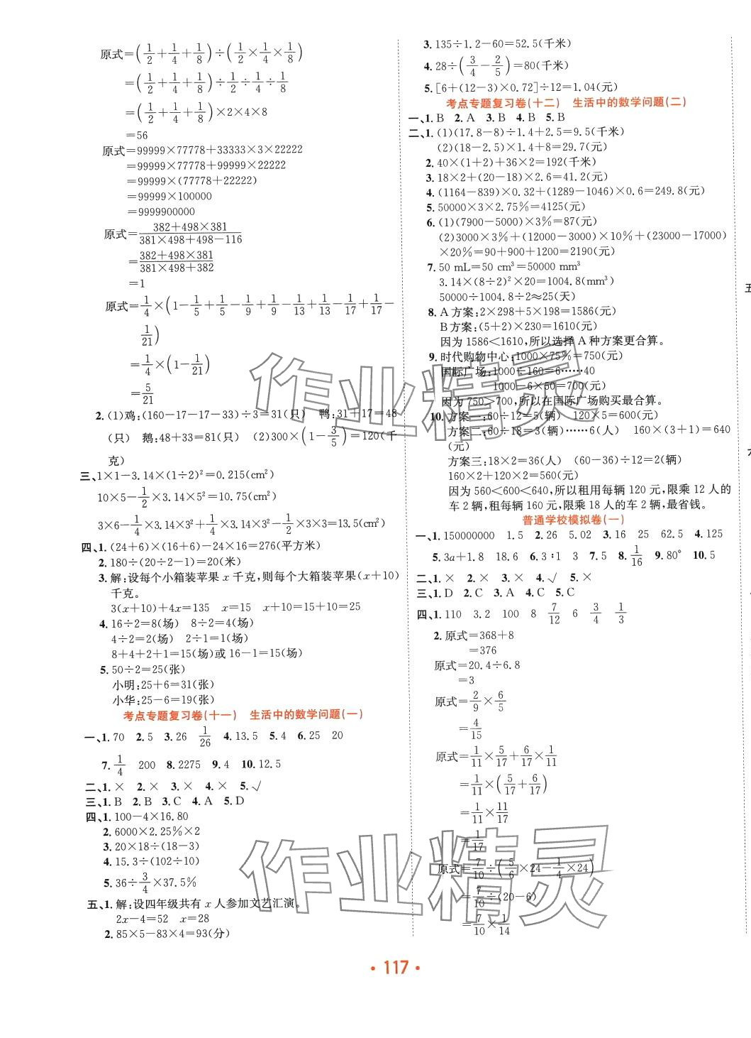 注:目前有些书本章节名称可能整理的还不是很完善,但都是按照顺序排列的,请同学们按照顺序仔细查找。练习册 2024年小升初考前必刷卷六年级数学全一册通用版 答案主要是用来给同学们做完题方便对答案用的,请勿直接抄袭。