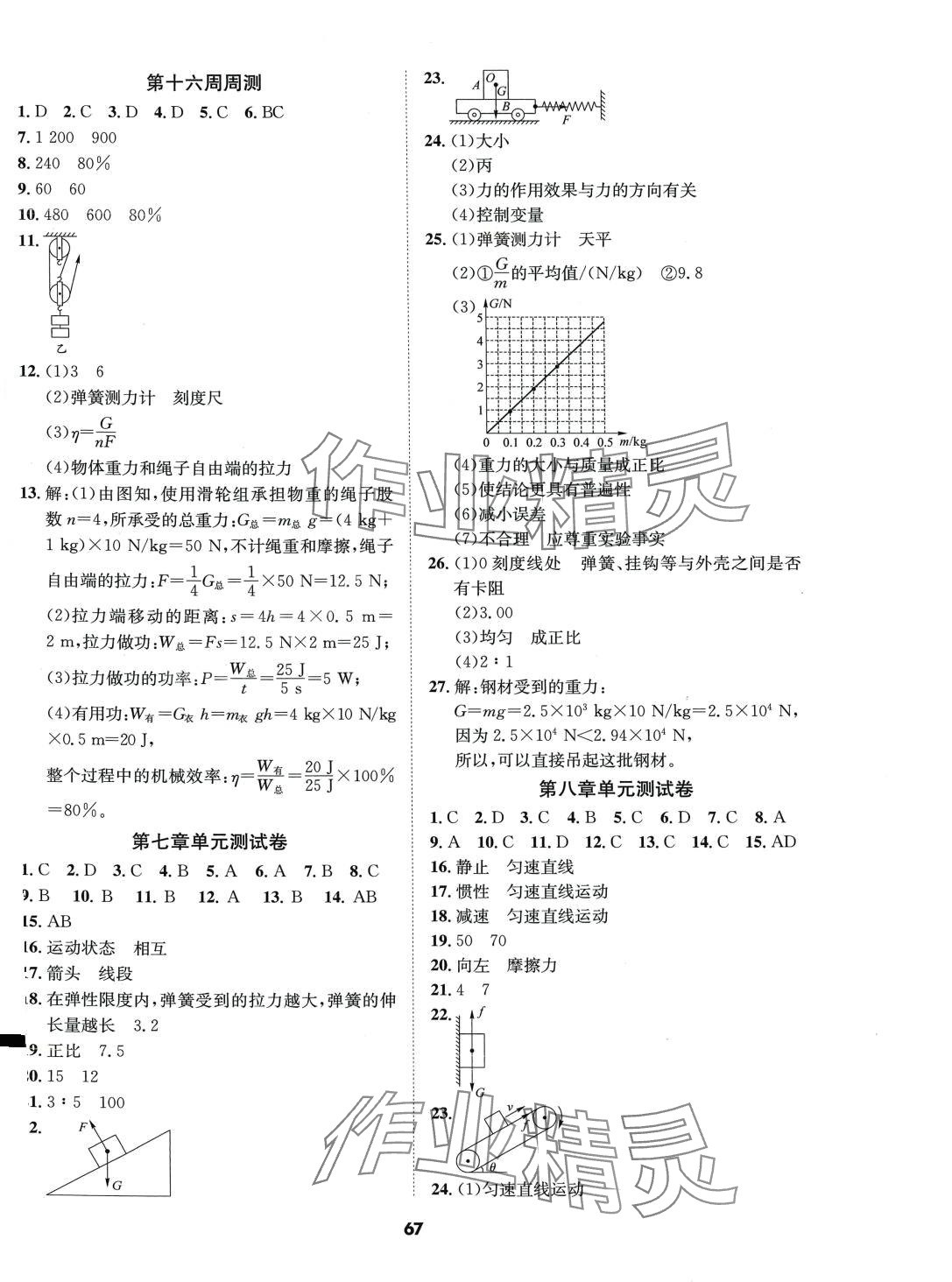 注:目前有些书本章节名称可能整理的还不是很完善,但都是按照顺序排列的,请同学们按照顺序仔细查找。练习册 2024年优化夺标单元测试卷八年级物理下册人教版 答案主要是用来给同学们做完题方便对答案用的,请勿直接抄袭。
