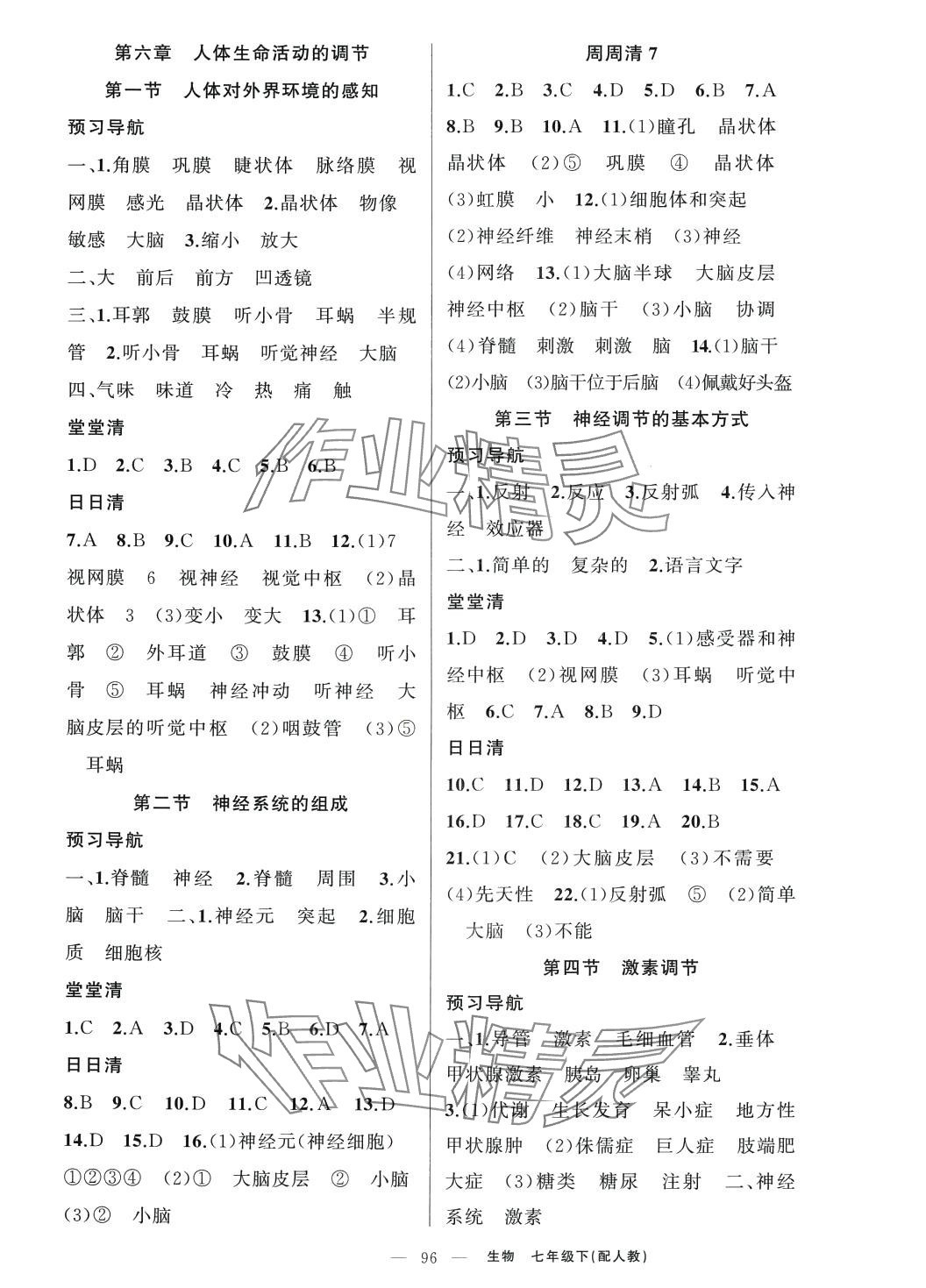 注:目前有些书本章节名称可能整理的还不是很完善,但都是按照顺序排列的,请同学们按照顺序仔细查找。练习册 2024年四清导航七年级生物下册人教版 答案主要是用来给同学们做完题方便对答案用的,请勿直接抄袭。