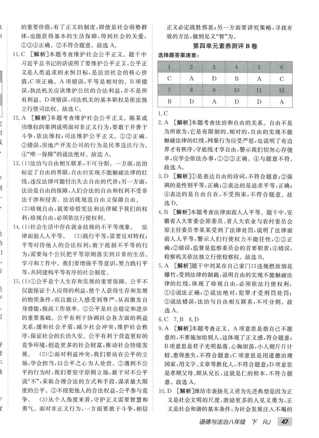 注:目前有些书本章节名称可能整理的还不是很完善,但都是按照顺序排列的,请同学们按照顺序仔细查找。练习册 2024年海淀单元测试AB卷八年级道德与法治下册人教版 答案主要是用来给同学们做完题方便对答案用的,请勿直接抄袭。