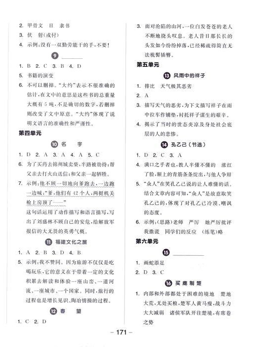 注:目前有些书本章节名称可能整理的还不是很完善,但都是按照顺序排列的,请同学们按照顺序仔细查找。练习册 2024年全品学练考五年级语文下册人教版福建专版 答案主要是用来给同学们做完题方便对答案用的,请勿直接抄袭。