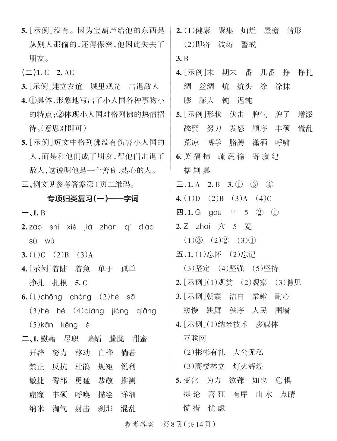 注:目前有些书本章节名称可能整理的还不是很完善,但都是按照顺序排列的,请同学们按照顺序仔细查找。练习册 2024年小学学霸单元期末标准卷四年级语文下册人教版 答案主要是用来给同学们做完题方便对答案用的,请勿直接抄袭。