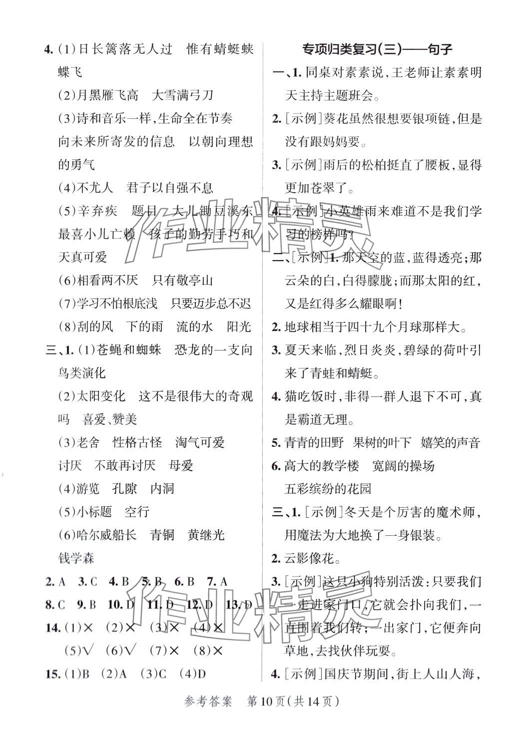 注:目前有些书本章节名称可能整理的还不是很完善,但都是按照顺序排列的,请同学们按照顺序仔细查找。练习册 2024年小学学霸单元期末标准卷四年级语文下册人教版 答案主要是用来给同学们做完题方便对答案用的,请勿直接抄袭。