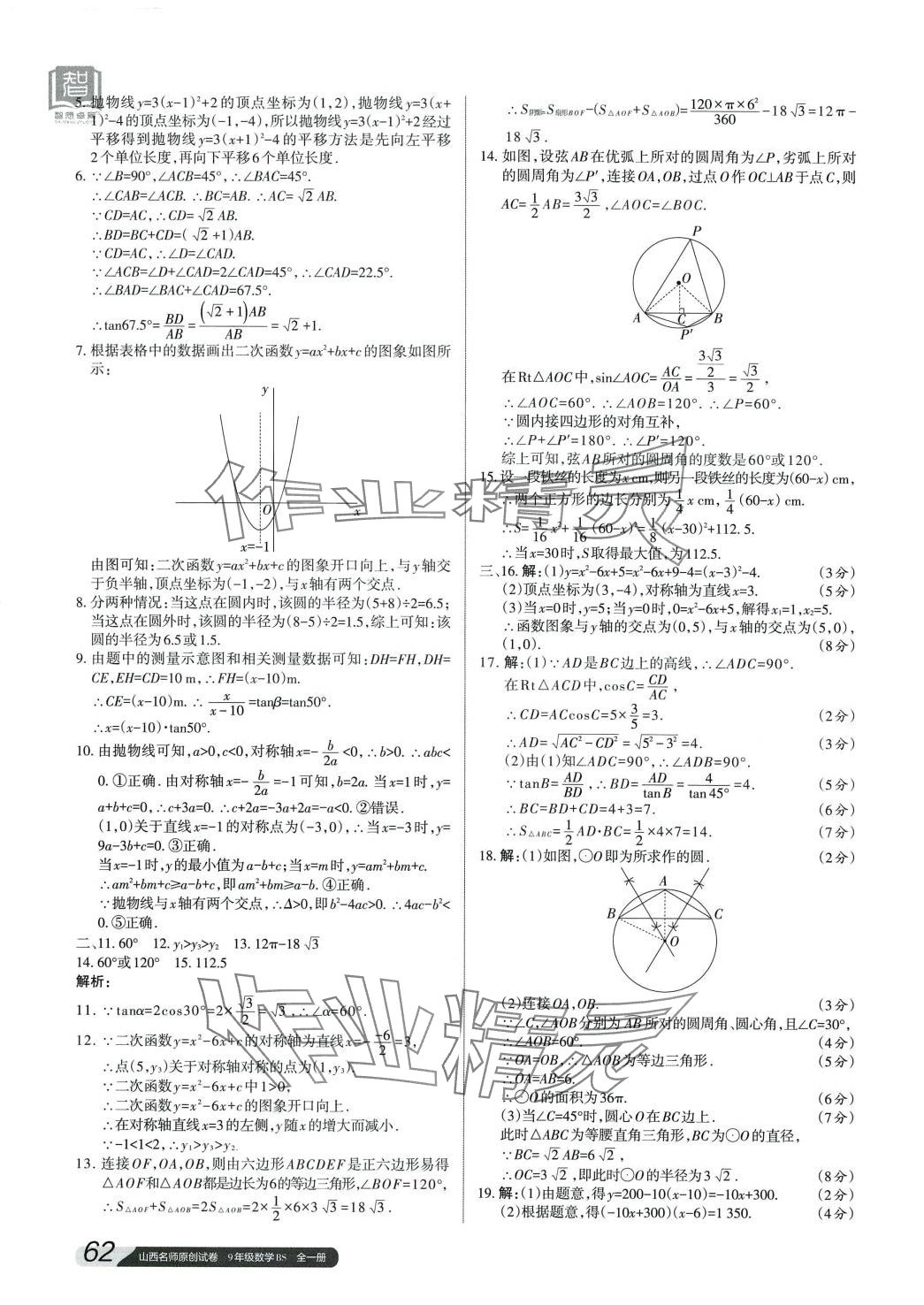 注:目前有些书本章节名称可能整理的还不是很完善,但都是按照顺序排列的,请同学们按照顺序仔细查找。练习册 2024年山西名师原创试卷九年级数学全一册北师大版 答案主要是用来给同学们做完题方便对答案用的,请勿直接抄袭。