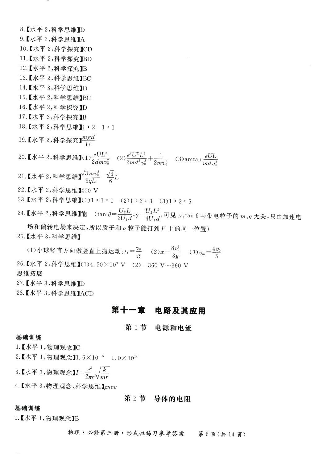注:目前有些书本章节名称可能整理的还不是很完善,但都是按照顺序排列的,请同学们按照顺序仔细查找。练习册 2024年形成性练习与检测高中物理必修第三册 答案主要是用来给同学们做完题方便对答案用的,请勿直接抄袭。