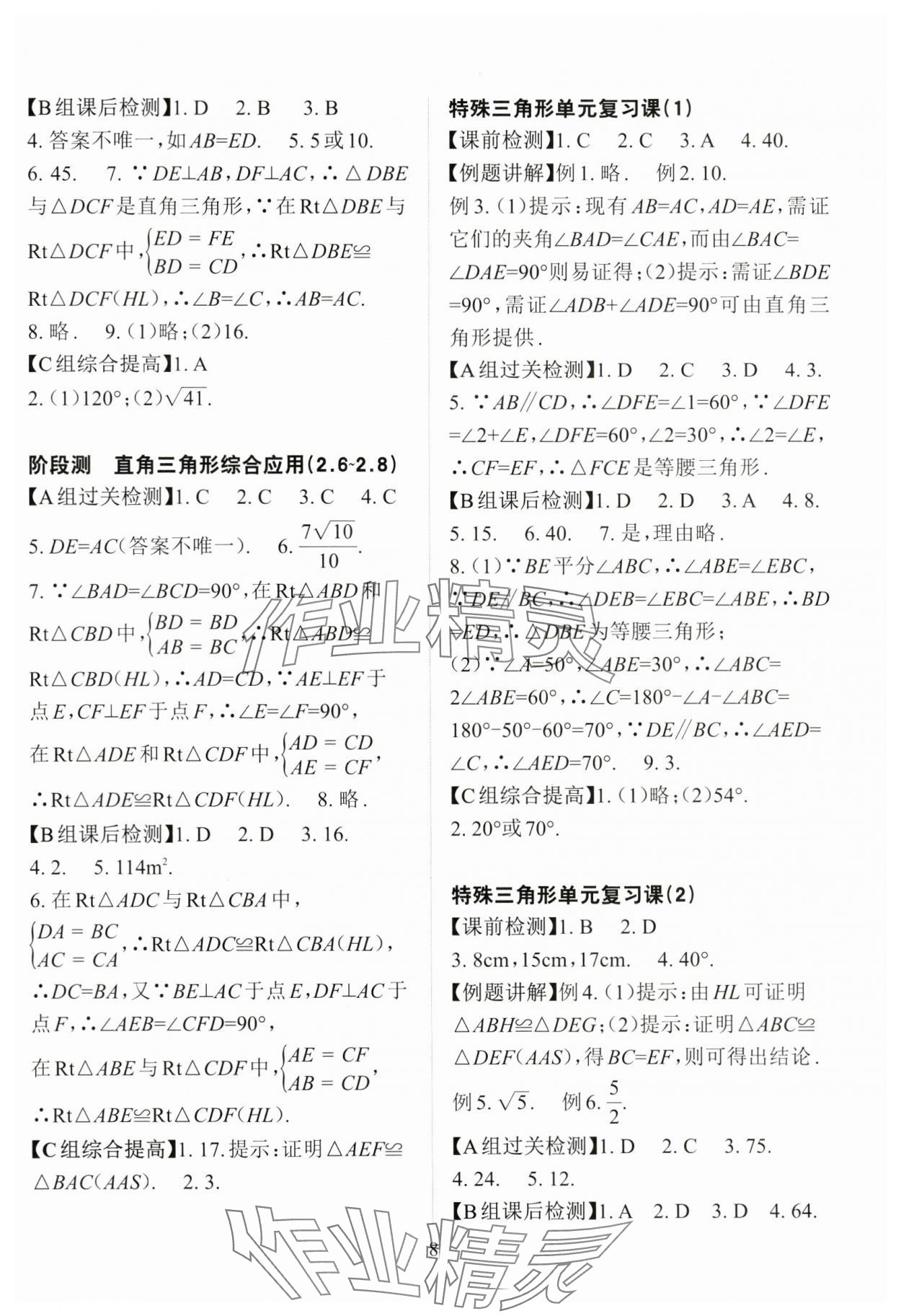 注:目前有些书本章节名称可能整理的还不是很完善,但都是按照顺序排列的,请同学们按照顺序仔细查找。练习册 2024年课前课后快速检测八年级数学上册浙教版 答案主要是用来给同学们做完题方便对答案用的,请勿直接抄袭。