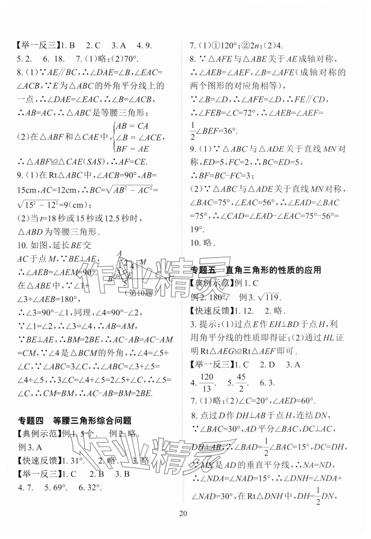注:目前有些书本章节名称可能整理的还不是很完善,但都是按照顺序排列的,请同学们按照顺序仔细查找。练习册 2024年课前课后快速检测八年级数学上册浙教版 答案主要是用来给同学们做完题方便对答案用的,请勿直接抄袭。