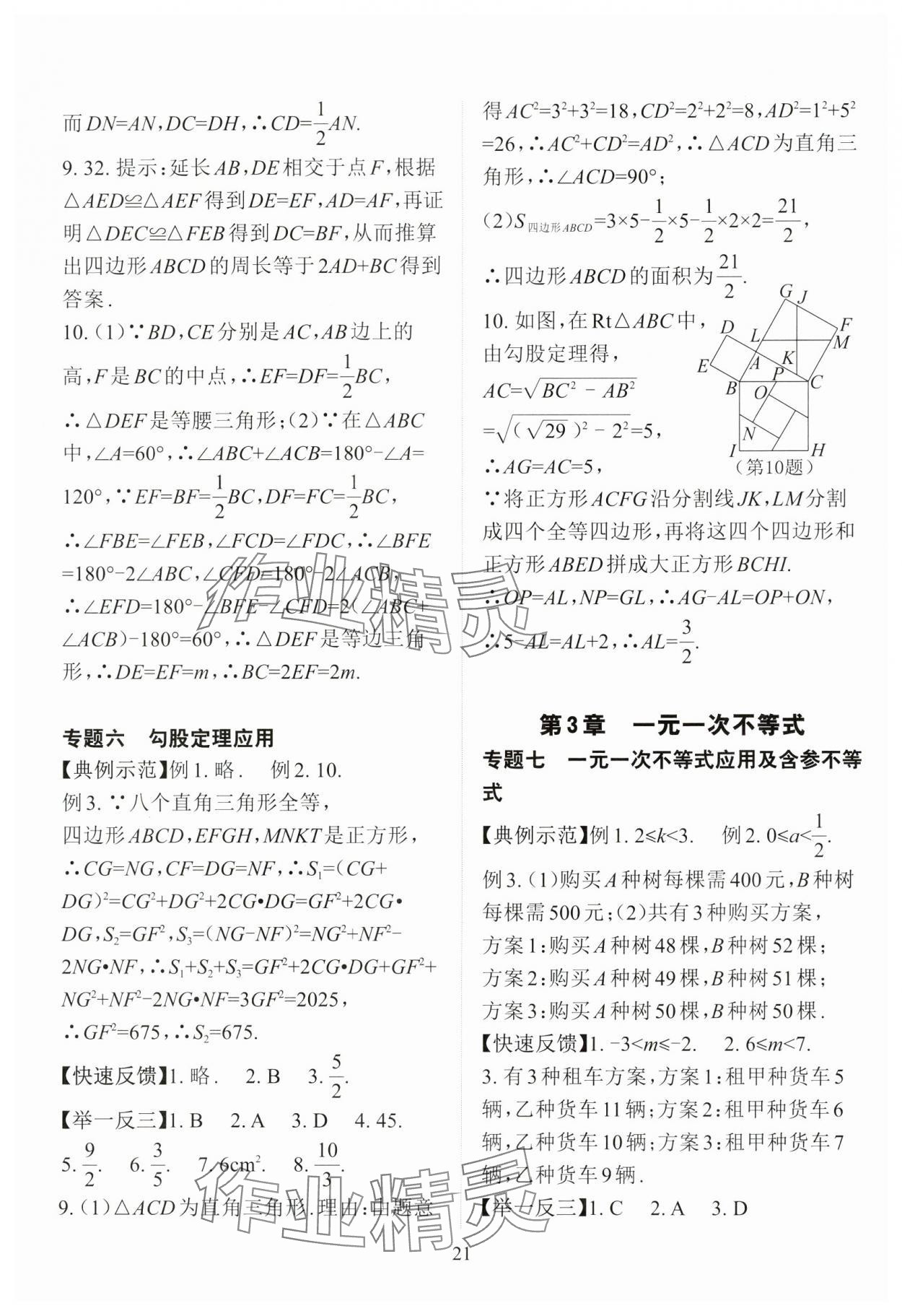 注:目前有些书本章节名称可能整理的还不是很完善,但都是按照顺序排列的,请同学们按照顺序仔细查找。练习册 2024年课前课后快速检测八年级数学上册浙教版 答案主要是用来给同学们做完题方便对答案用的,请勿直接抄袭。