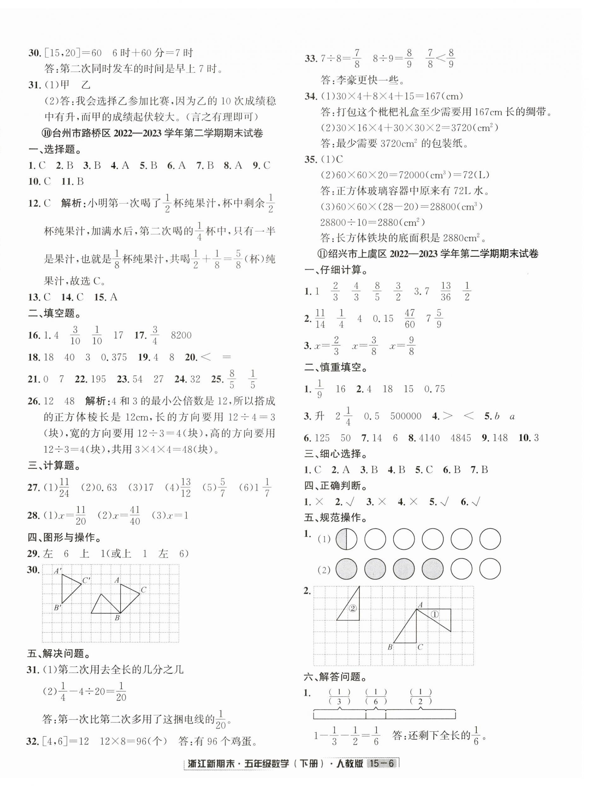 注:目前有些书本章节名称可能整理的还不是很完善,但都是按照顺序排列的,请同学们按照顺序仔细查找。练习册 2024年励耘书业浙江新期末五年级数学下册人教版 答案主要是用来给同学们做完题方便对答案用的,请勿直接抄袭。