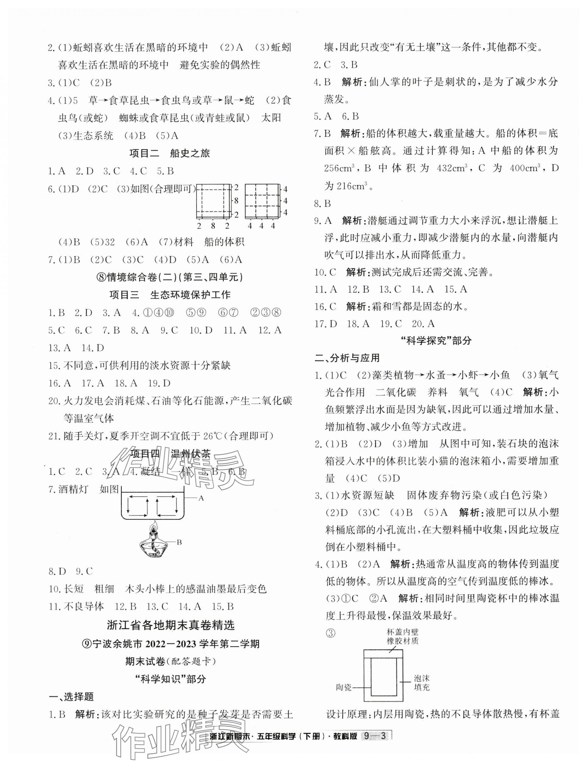 2024年励耘书业浙江新期末五年级科学下册教科版