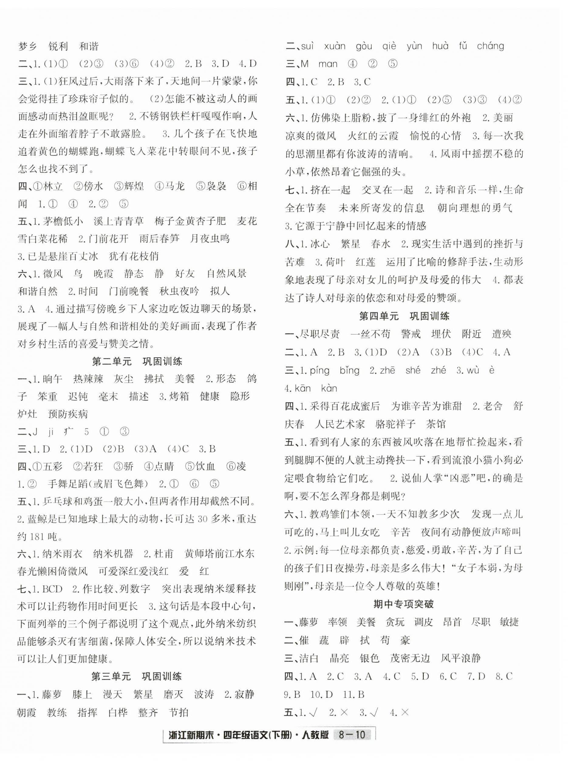 注:目前有些书本章节名称可能整理的还不是很完善,但都是按照顺序排列的,请同学们按照顺序仔细查找。练习册 2024年浙江新期末四年级语文下册人教版 答案主要是用来给同学们做完题方便对答案用的,请勿直接抄袭。