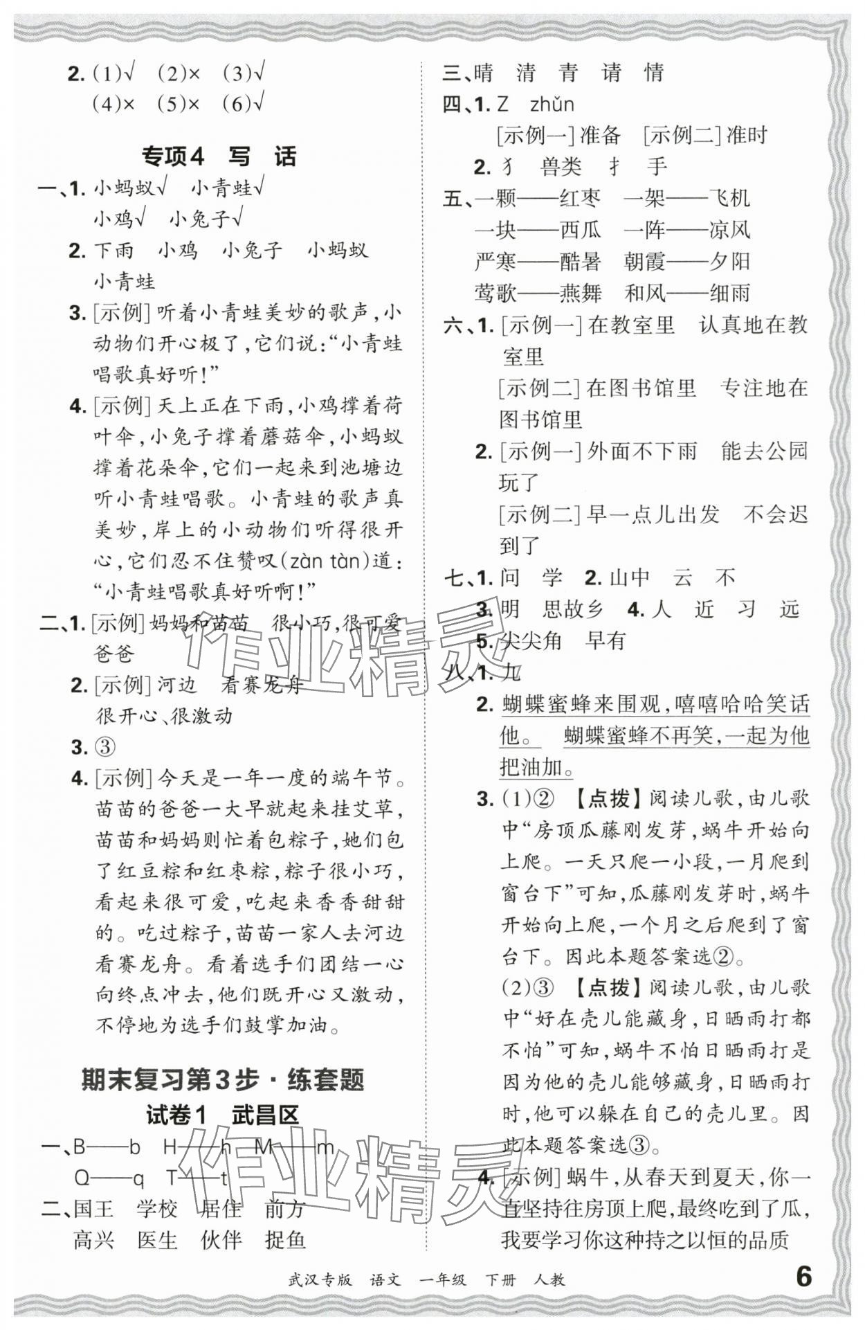 注:目前有些书本章节名称可能整理的还不是很完善,但都是按照顺序排列的,请同学们按照顺序仔细查找。练习册 2024年王朝霞期末真题精编一年级语文下册人教版武汉专版 答案主要是用来给同学们做完题方便对答案用的,请勿直接抄袭。