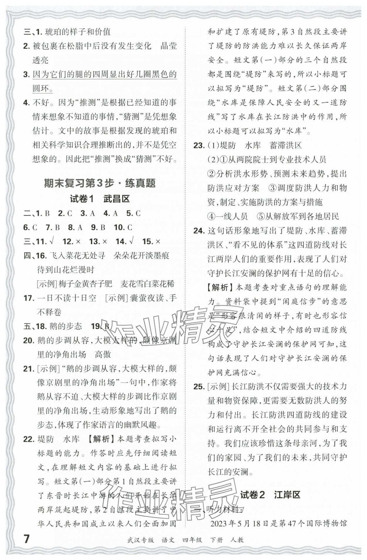 注:目前有些书本章节名称可能整理的还不是很完善,但都是按照顺序排列的,请同学们按照顺序仔细查找。练习册 2024年王朝霞期末真题精编四年级语文下册人教版武汉专版 答案主要是用来给同学们做完题方便对答案用的,请勿直接抄袭。