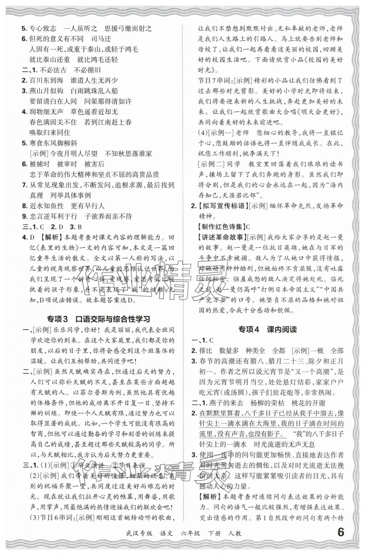 2024年王朝霞期末真题精编六年级语文下册人教版武汉专版