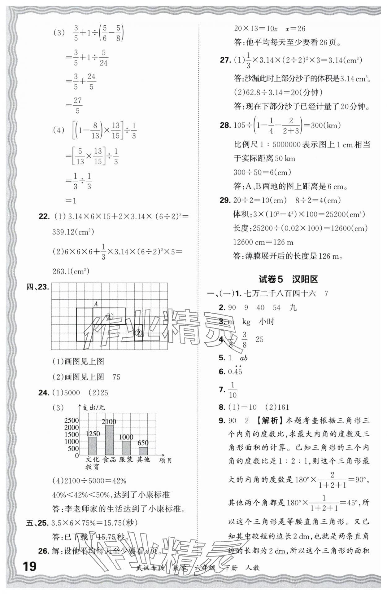 注:目前有些书本章节名称可能整理的还不是很完善,但都是按照顺序排列的,请同学们按照顺序仔细查找。练习册 2024年王朝霞期末真题精编六年级数学下册人教版武汉专版 答案主要是用来给同学们做完题方便对答案用的,请勿直接抄袭。