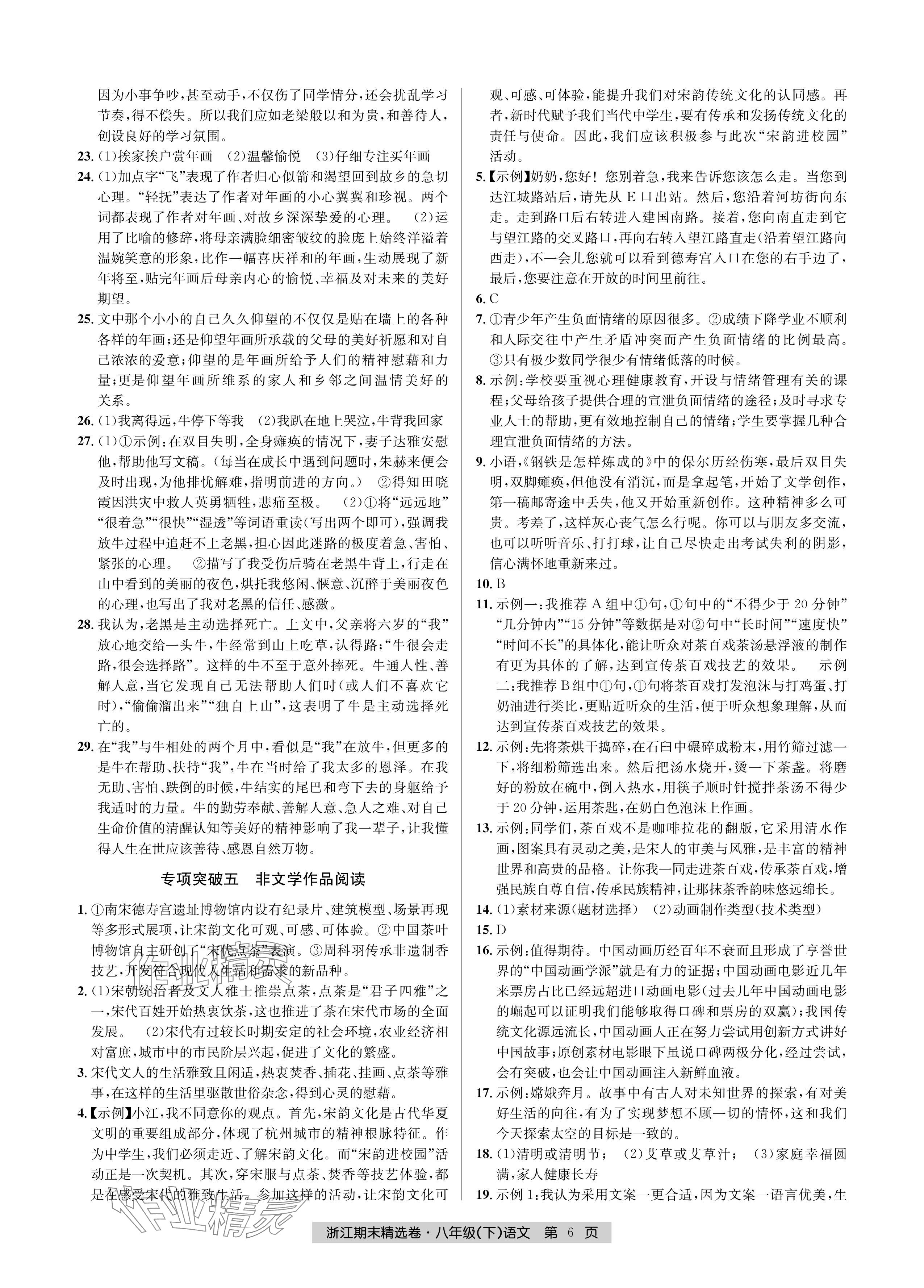 注:目前有些书本章节名称可能整理的还不是很完善,但都是按照顺序排列的,请同学们按照顺序仔细查找。练习册 2024年浙江期末精选卷八年级语文下册人教版 答案主要是用来给同学们做完题方便对答案用的,请勿直接抄袭。