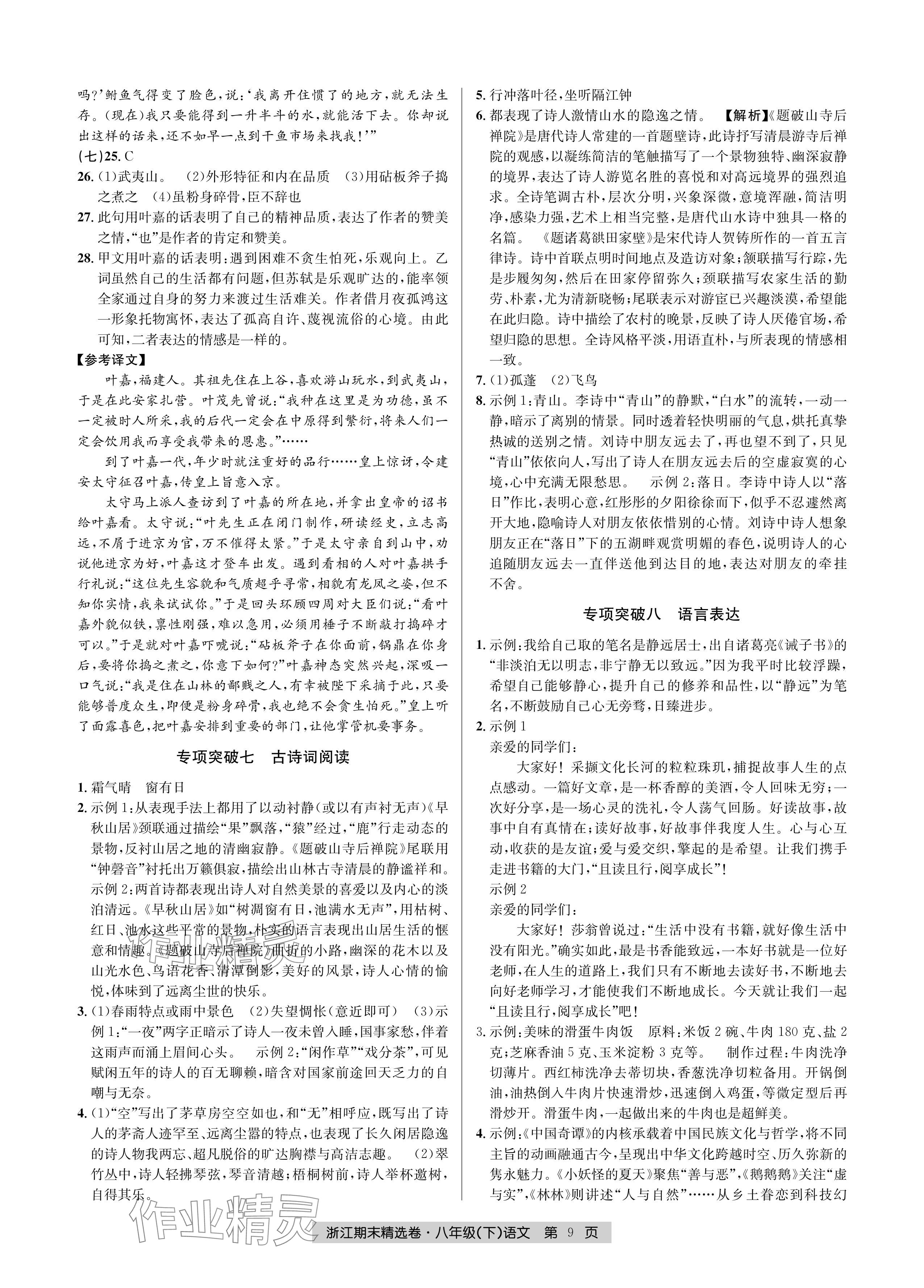 注:目前有些书本章节名称可能整理的还不是很完善,但都是按照顺序排列的,请同学们按照顺序仔细查找。练习册 2024年浙江期末精选卷八年级语文下册人教版 答案主要是用来给同学们做完题方便对答案用的,请勿直接抄袭。
