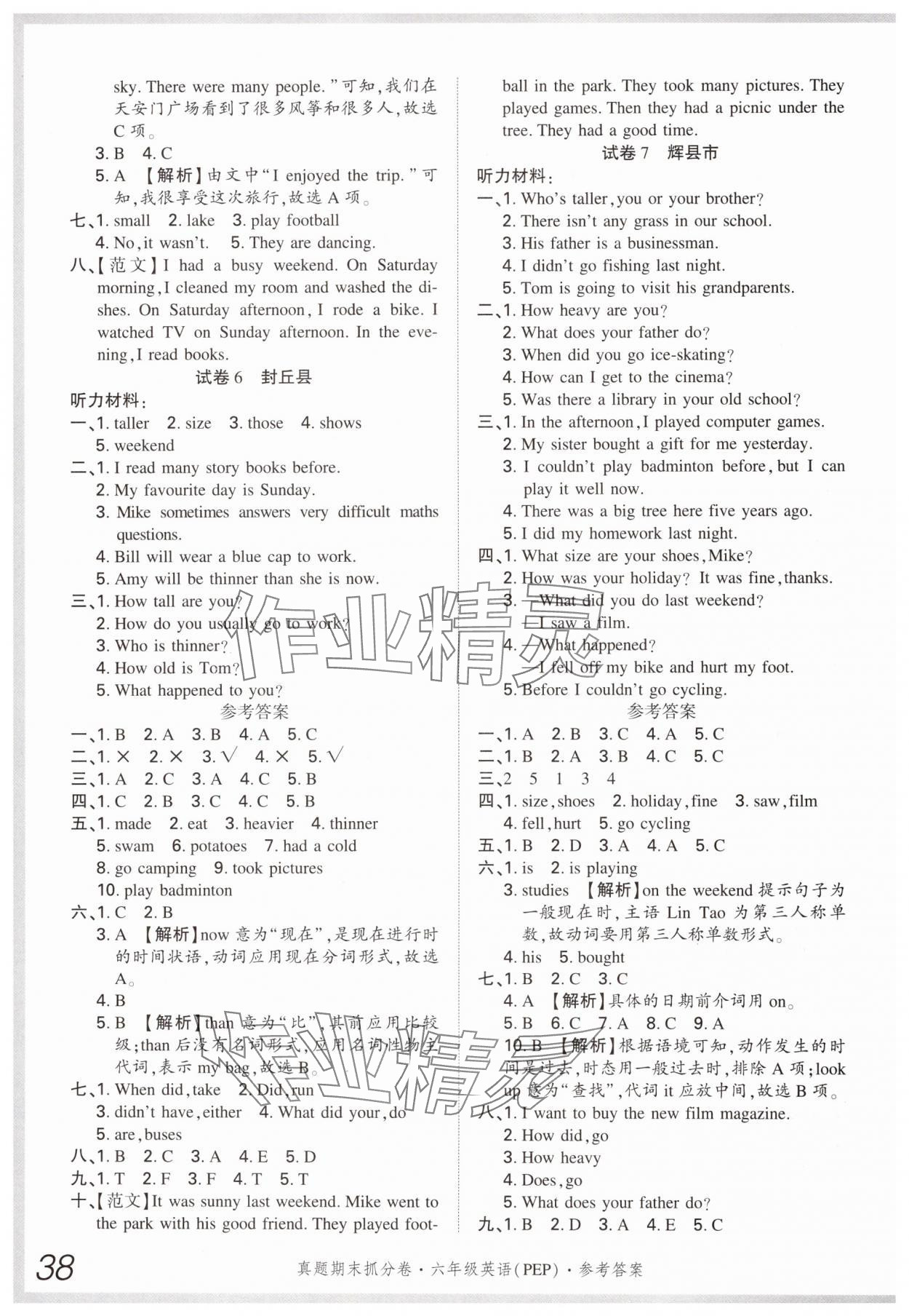 注:目前有些书本章节名称可能整理的还不是很完善,但都是按照顺序排列的,请同学们按照顺序仔细查找。练习册 2024年真题期末抓分卷六年级英语下册人教版河南专版 答案主要是用来给同学们做完题方便对答案用的,请勿直接抄袭。