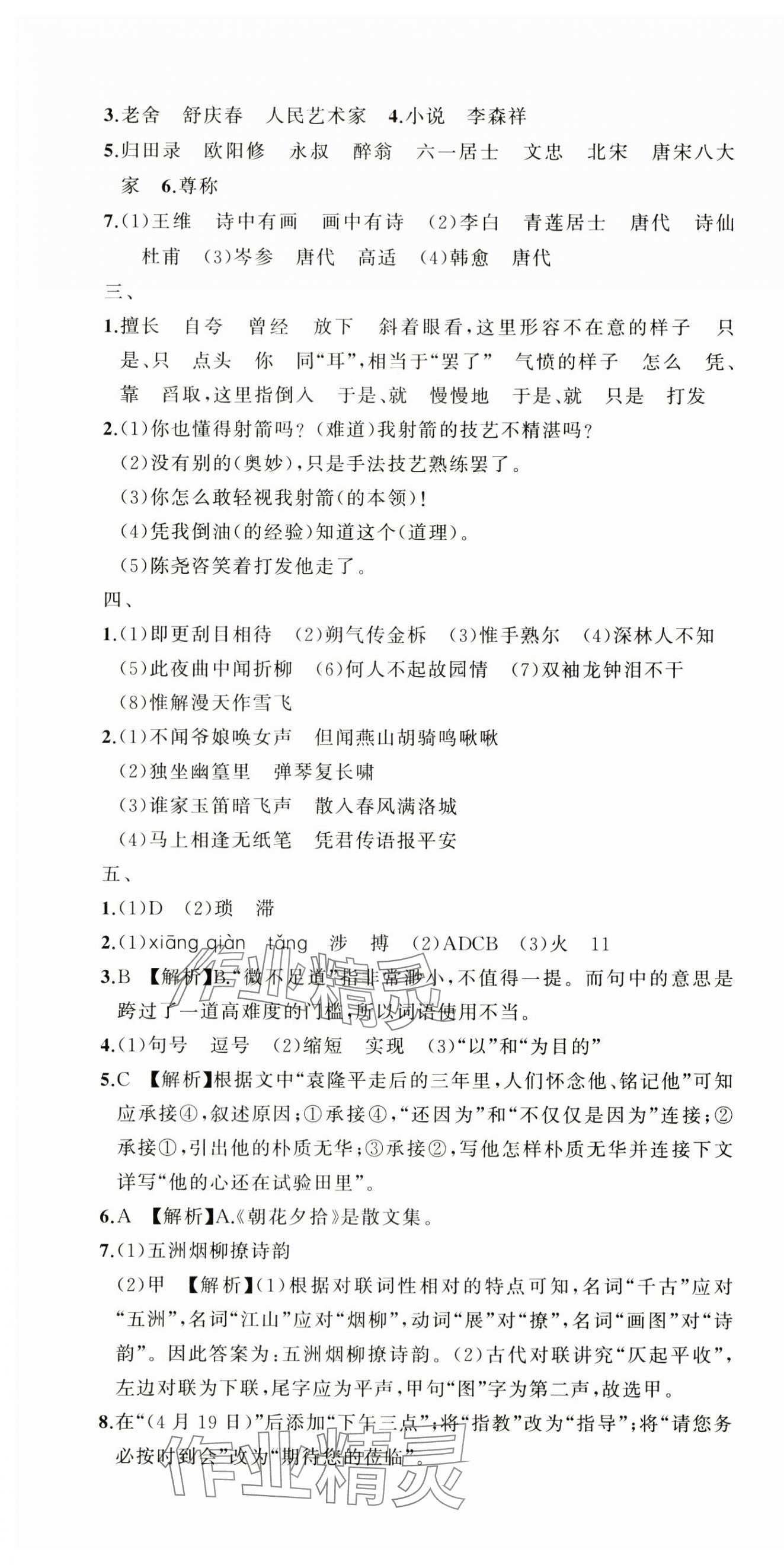 注:目前有些书本章节名称可能整理的还不是很完善,但都是按照顺序排列的,请同学们按照顺序仔细查找。练习册 2024年名师面对面期末大通关七年级语文下册人教版 答案主要是用来给同学们做完题方便对答案用的,请勿直接抄袭。