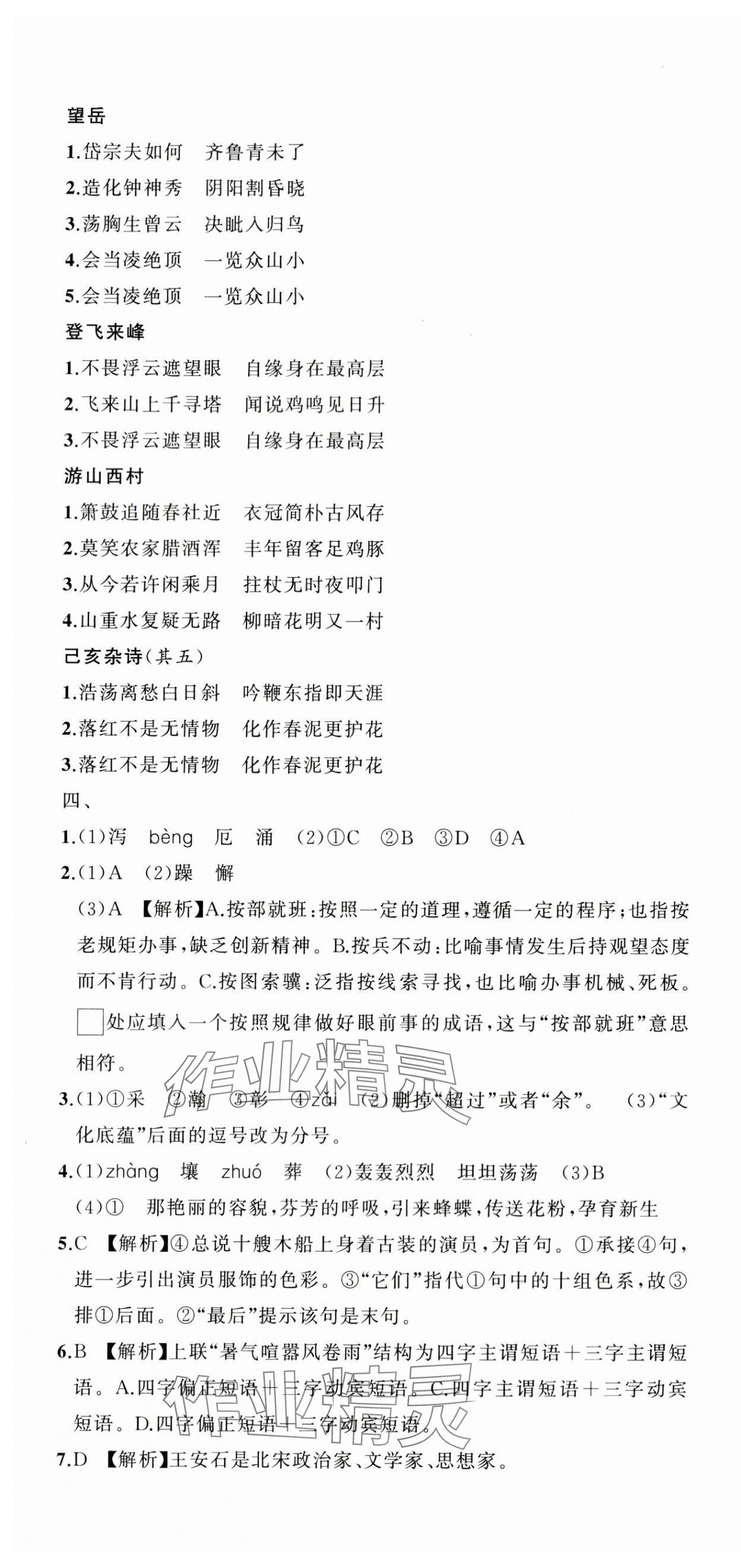 注:目前有些书本章节名称可能整理的还不是很完善,但都是按照顺序排列的,请同学们按照顺序仔细查找。练习册 2024年名师面对面期末大通关七年级语文下册人教版 答案主要是用来给同学们做完题方便对答案用的,请勿直接抄袭。