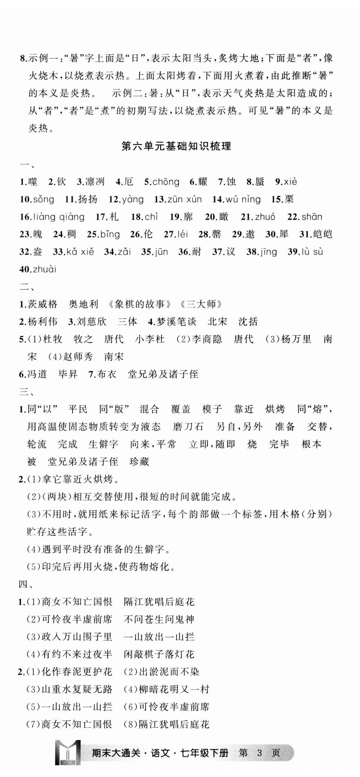 注:目前有些书本章节名称可能整理的还不是很完善,但都是按照顺序排列的,请同学们按照顺序仔细查找。练习册 2024年名师面对面期末大通关七年级语文下册人教版 答案主要是用来给同学们做完题方便对答案用的,请勿直接抄袭。