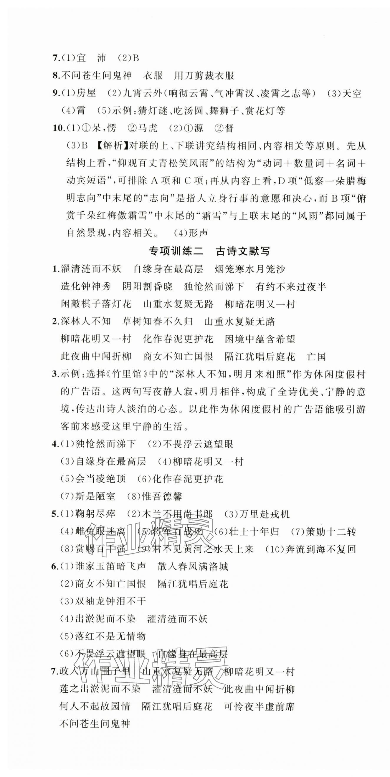 注:目前有些书本章节名称可能整理的还不是很完善,但都是按照顺序排列的,请同学们按照顺序仔细查找。练习册 2024年名师面对面期末大通关七年级语文下册人教版 答案主要是用来给同学们做完题方便对答案用的,请勿直接抄袭。