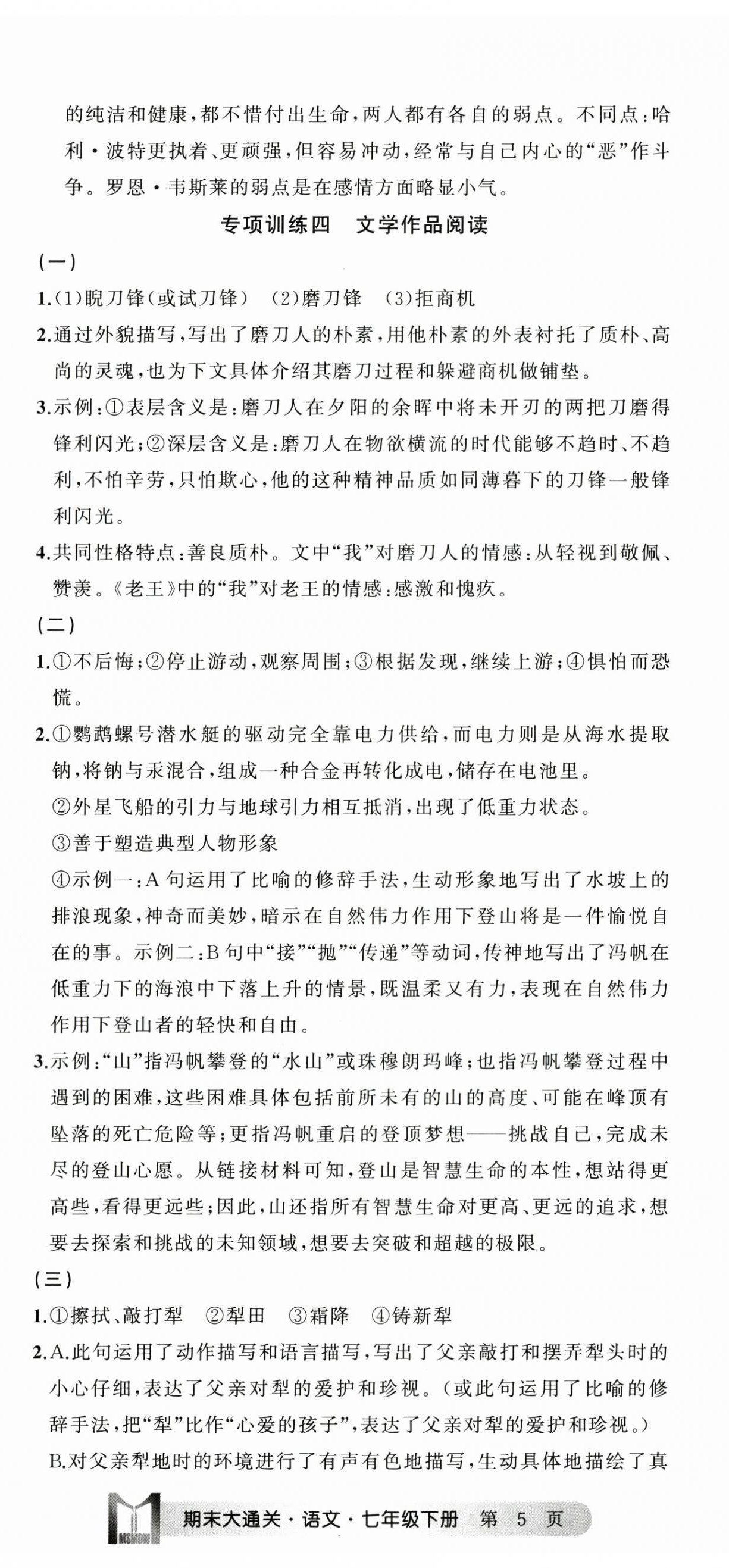 注:目前有些书本章节名称可能整理的还不是很完善,但都是按照顺序排列的,请同学们按照顺序仔细查找。练习册 2024年名师面对面期末大通关七年级语文下册人教版 答案主要是用来给同学们做完题方便对答案用的,请勿直接抄袭。