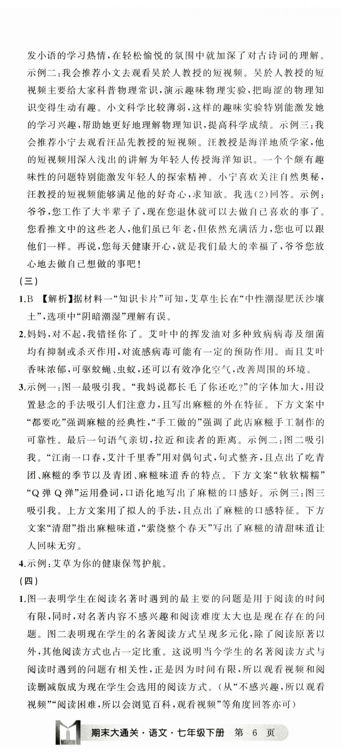 注:目前有些书本章节名称可能整理的还不是很完善,但都是按照顺序排列的,请同学们按照顺序仔细查找。练习册 2024年名师面对面期末大通关七年级语文下册人教版 答案主要是用来给同学们做完题方便对答案用的,请勿直接抄袭。