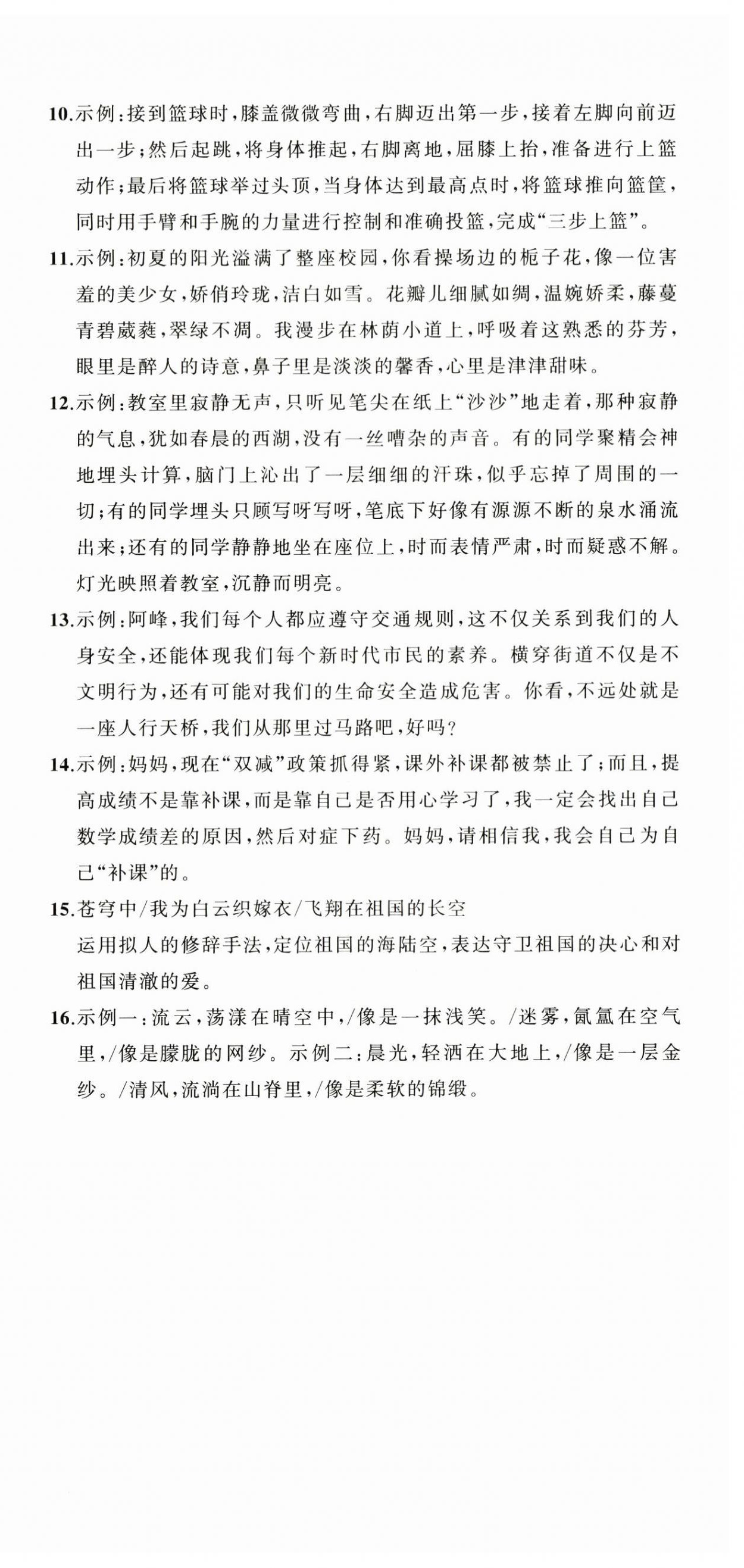 注:目前有些书本章节名称可能整理的还不是很完善,但都是按照顺序排列的,请同学们按照顺序仔细查找。练习册 2024年名师面对面期末大通关七年级语文下册人教版 答案主要是用来给同学们做完题方便对答案用的,请勿直接抄袭。