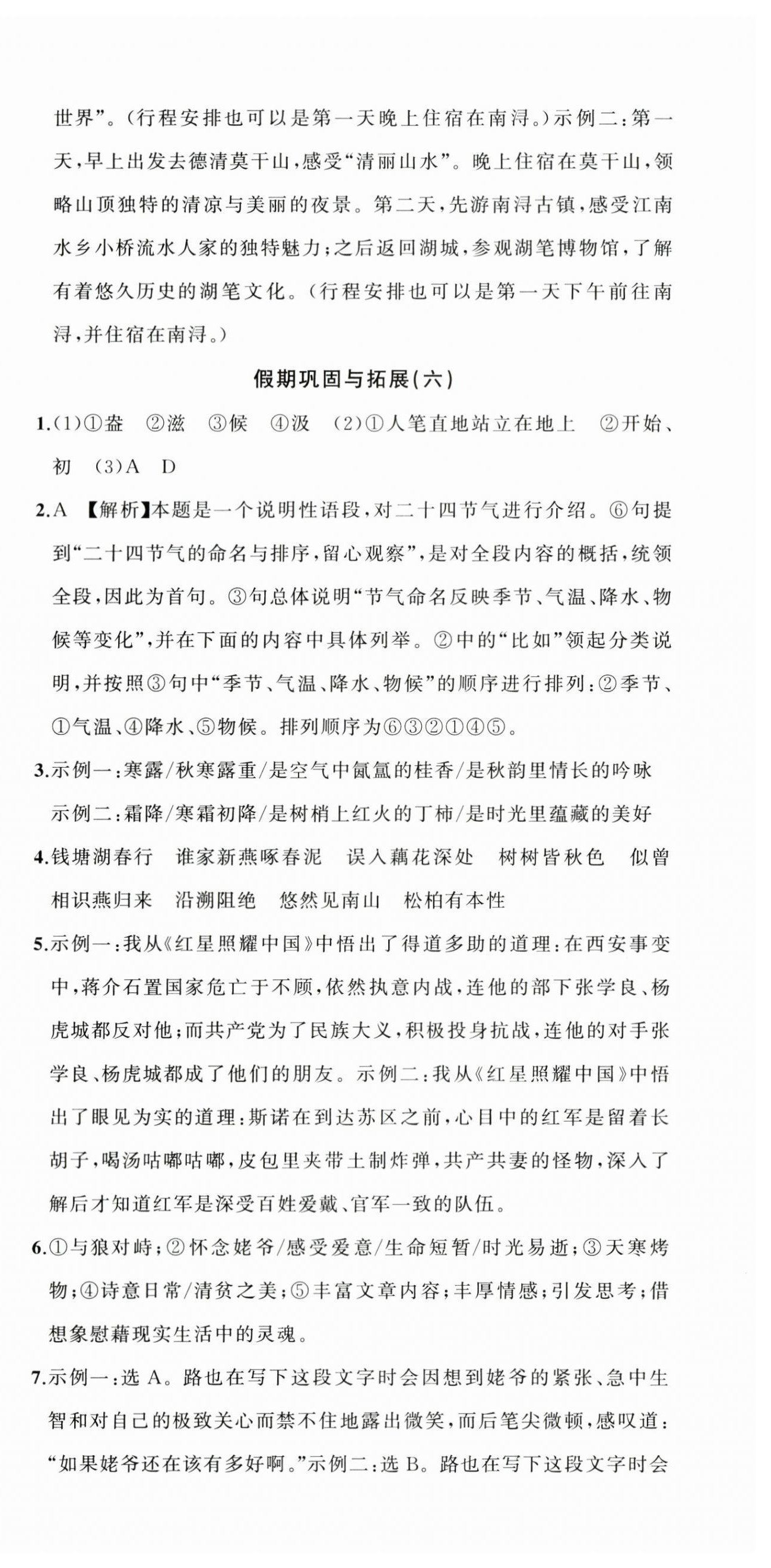 注:目前有些书本章节名称可能整理的还不是很完善,但都是按照顺序排列的,请同学们按照顺序仔细查找。练习册 2024年名师面对面期末大通关七年级语文下册人教版 答案主要是用来给同学们做完题方便对答案用的,请勿直接抄袭。