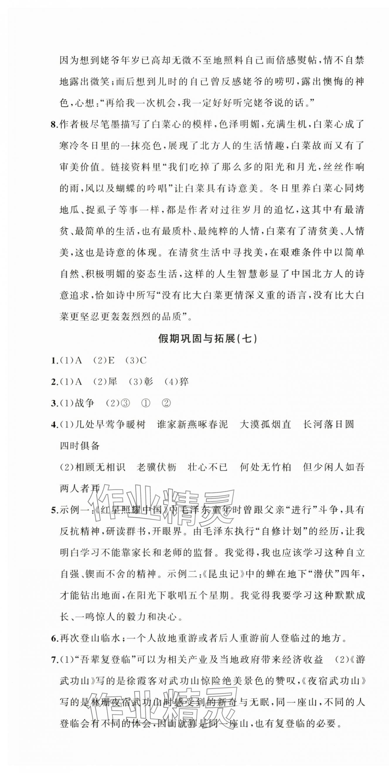 注:目前有些书本章节名称可能整理的还不是很完善,但都是按照顺序排列的,请同学们按照顺序仔细查找。练习册 2024年名师面对面期末大通关七年级语文下册人教版 答案主要是用来给同学们做完题方便对答案用的,请勿直接抄袭。