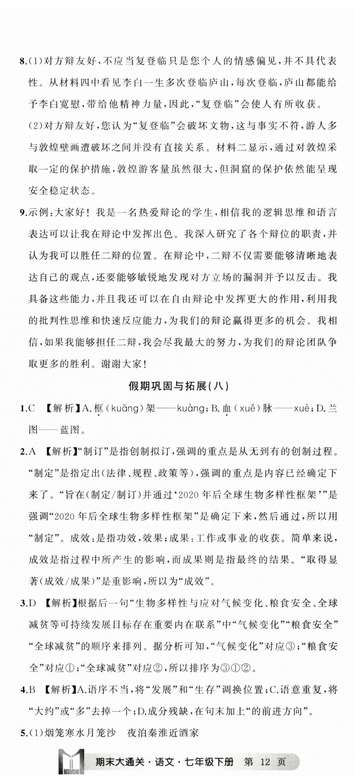 注:目前有些书本章节名称可能整理的还不是很完善,但都是按照顺序排列的,请同学们按照顺序仔细查找。练习册 2024年名师面对面期末大通关七年级语文下册人教版 答案主要是用来给同学们做完题方便对答案用的,请勿直接抄袭。