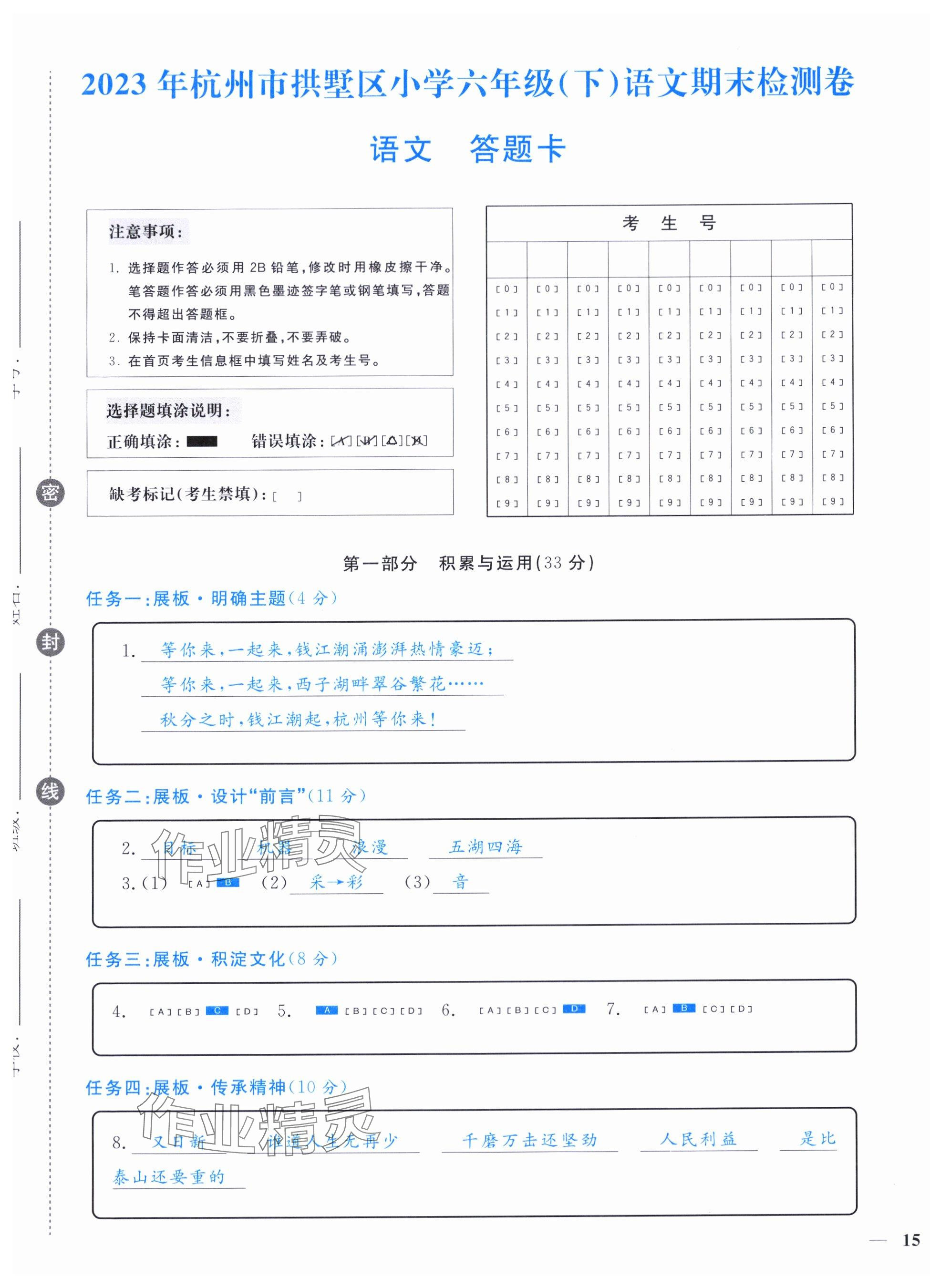 注:目前有些书本章节名称可能整理的还不是很完善,但都是按照顺序排列的,请同学们按照顺序仔细查找。练习册 2024年小学期末加油站六年级语文下册人教版 答案主要是用来给同学们做完题方便对答案用的,请勿直接抄袭。