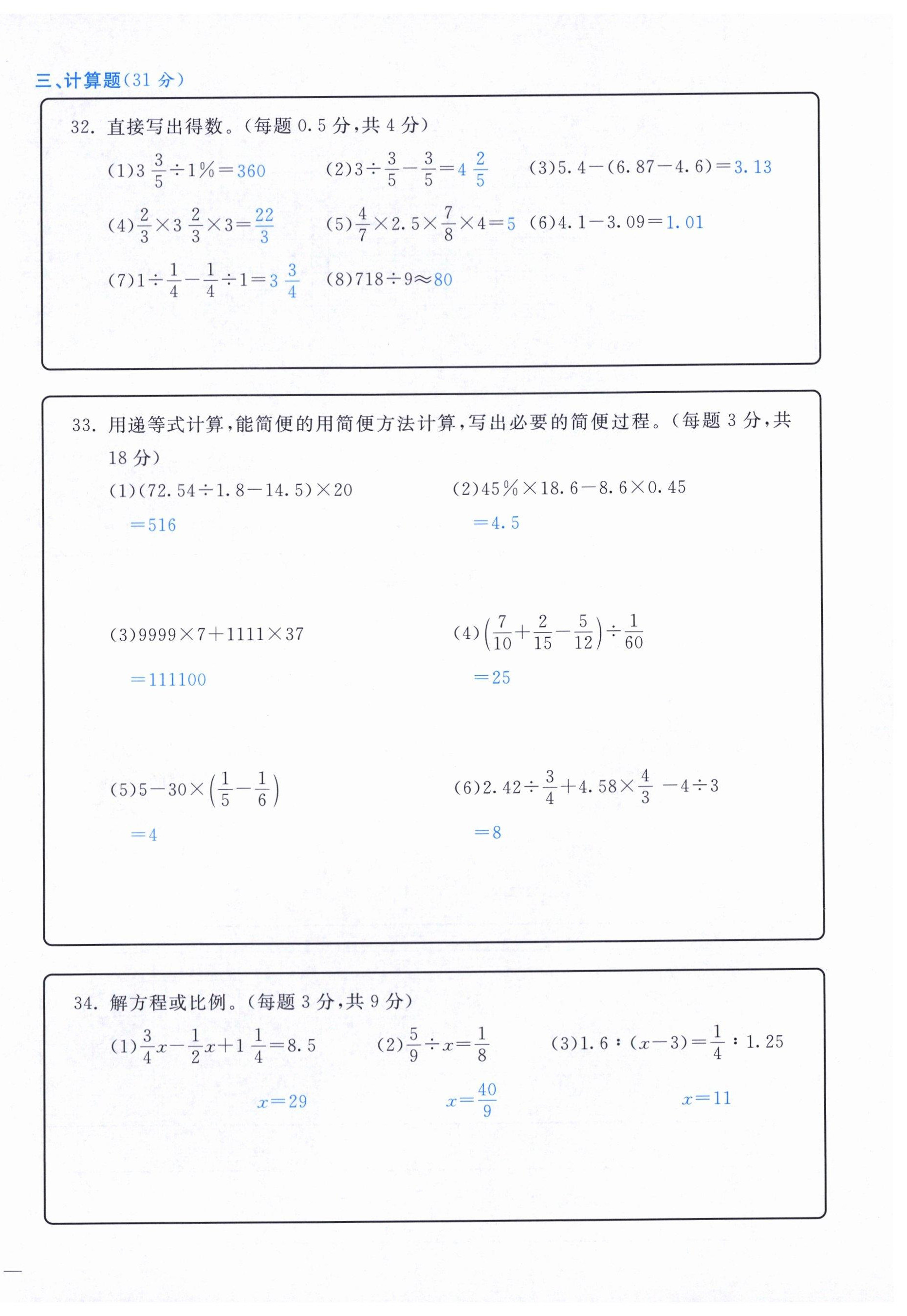 注:目前有些书本章节名称可能整理的还不是很完善,但都是按照顺序排列的,请同学们按照顺序仔细查找。练习册 2024年小学期末加油站六年级数学下册人教版 答案主要是用来给同学们做完题方便对答案用的,请勿直接抄袭。