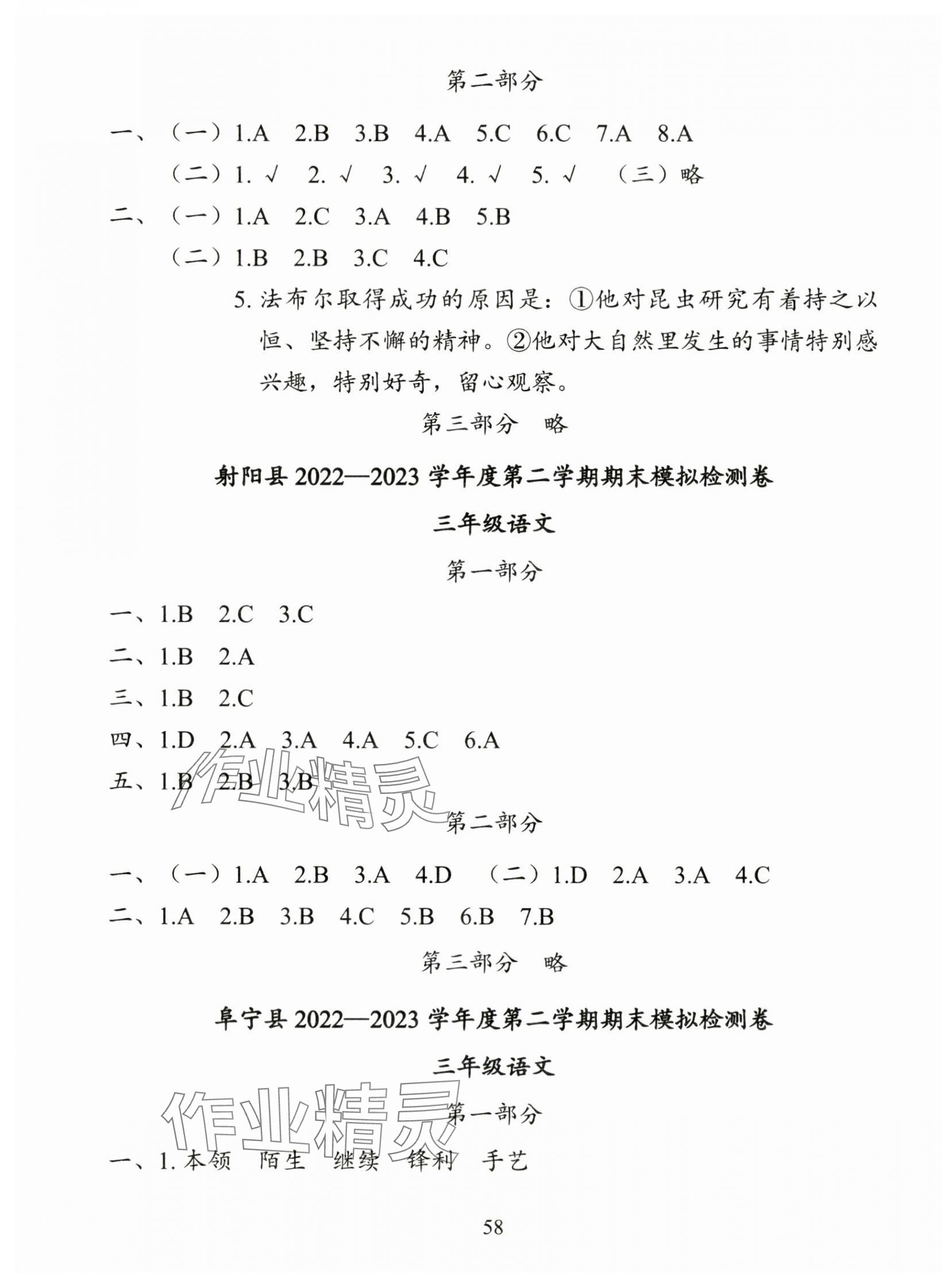 注:目前有些书本章节名称可能整理的还不是很完善,但都是按照顺序排列的,请同学们按照顺序仔细查找。练习册 2024年小学期末试卷汇编三年级语文下册人教版北京出版社 答案主要是用来给同学们做完题方便对答案用的,请勿直接抄袭。