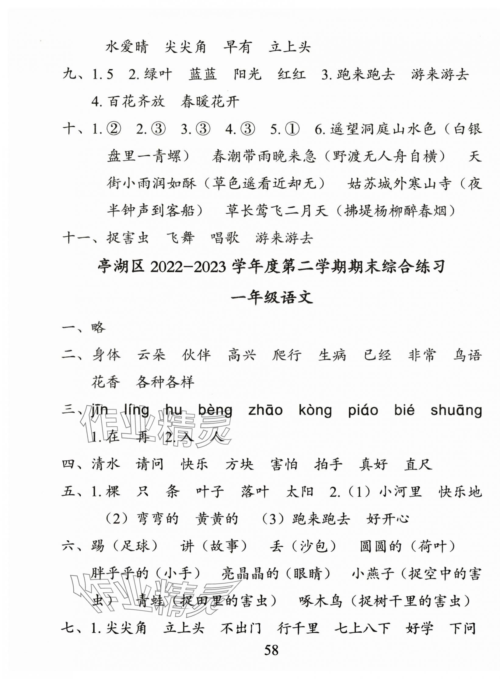 注:目前有些书本章节名称可能整理的还不是很完善,但都是按照顺序排列的,请同学们按照顺序仔细查找。练习册 2024年小学期末试卷汇编北京出版社一年级语文下册人教版 答案主要是用来给同学们做完题方便对答案用的,请勿直接抄袭。