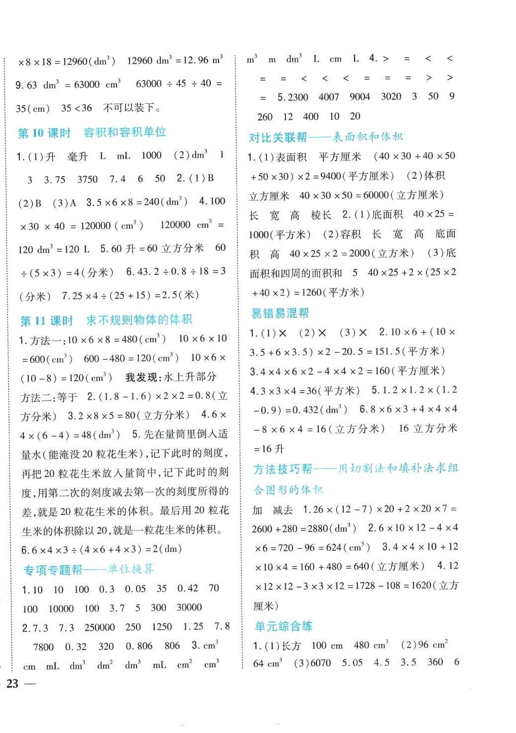 注:目前有些书本章节名称可能整理的还不是很完善,但都是按照顺序排列的,请同学们按照顺序仔细查找。练习册 2024年小学题帮五年级数学下册人教版 答案主要是用来给同学们做完题方便对答案用的,请勿直接抄袭。