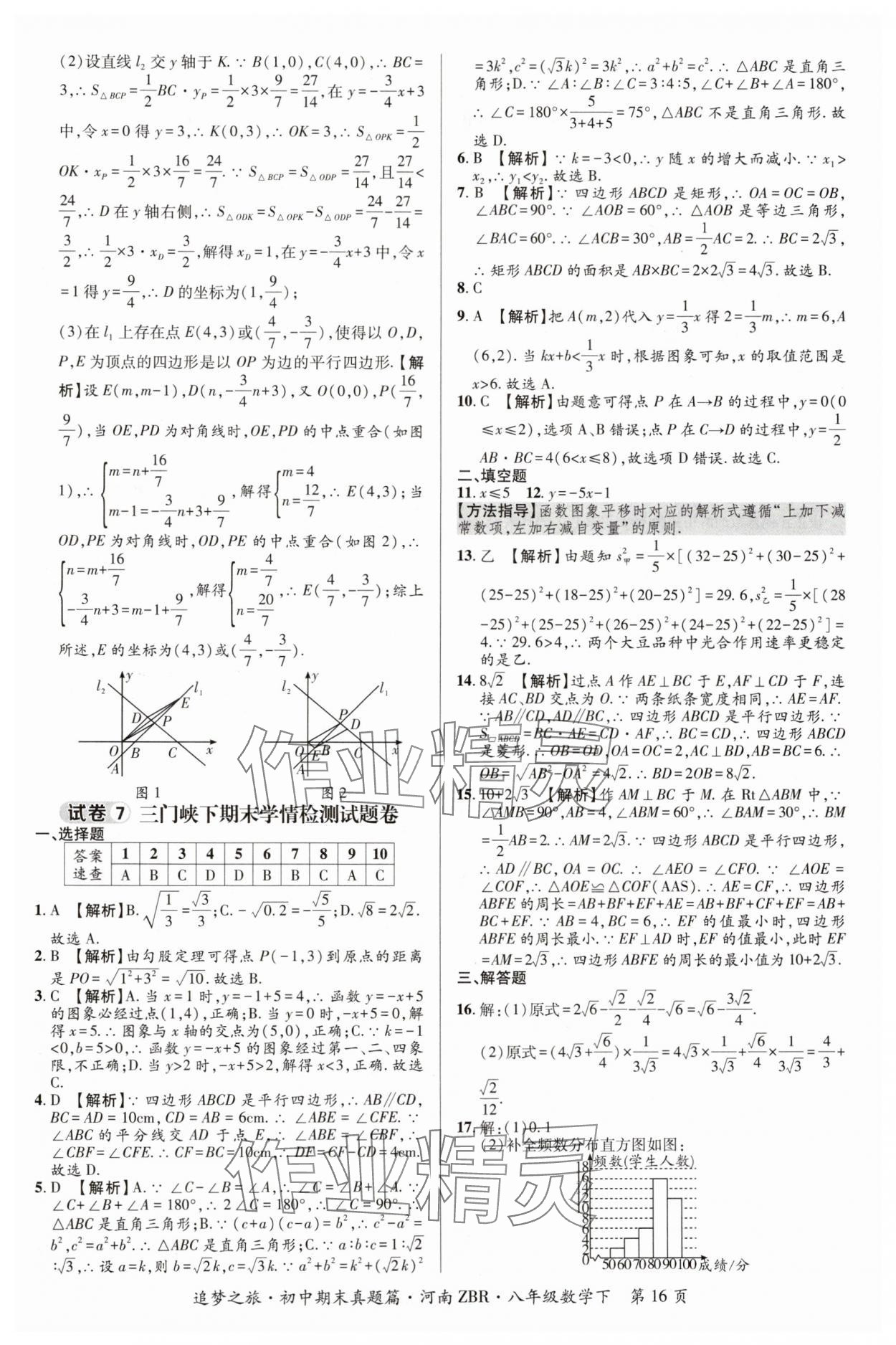 注:目前有些书本章节名称可能整理的还不是很完善,但都是按照顺序排列的,请同学们按照顺序仔细查找。练习册 2024年追梦之旅初中期末真题篇八年级数学下册人教版河南专版 答案主要是用来给同学们做完题方便对答案用的,请勿直接抄袭。
